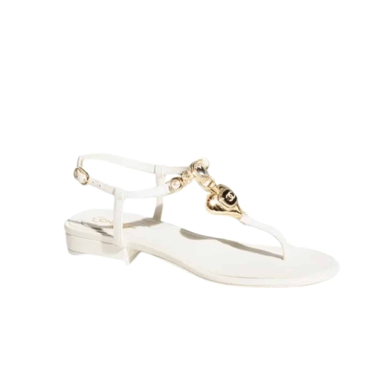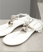 Chanel Shiny Pearl Crystal Cc Heart Thong Sandals White G39674 X01000 0S082