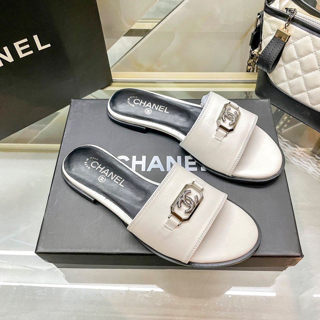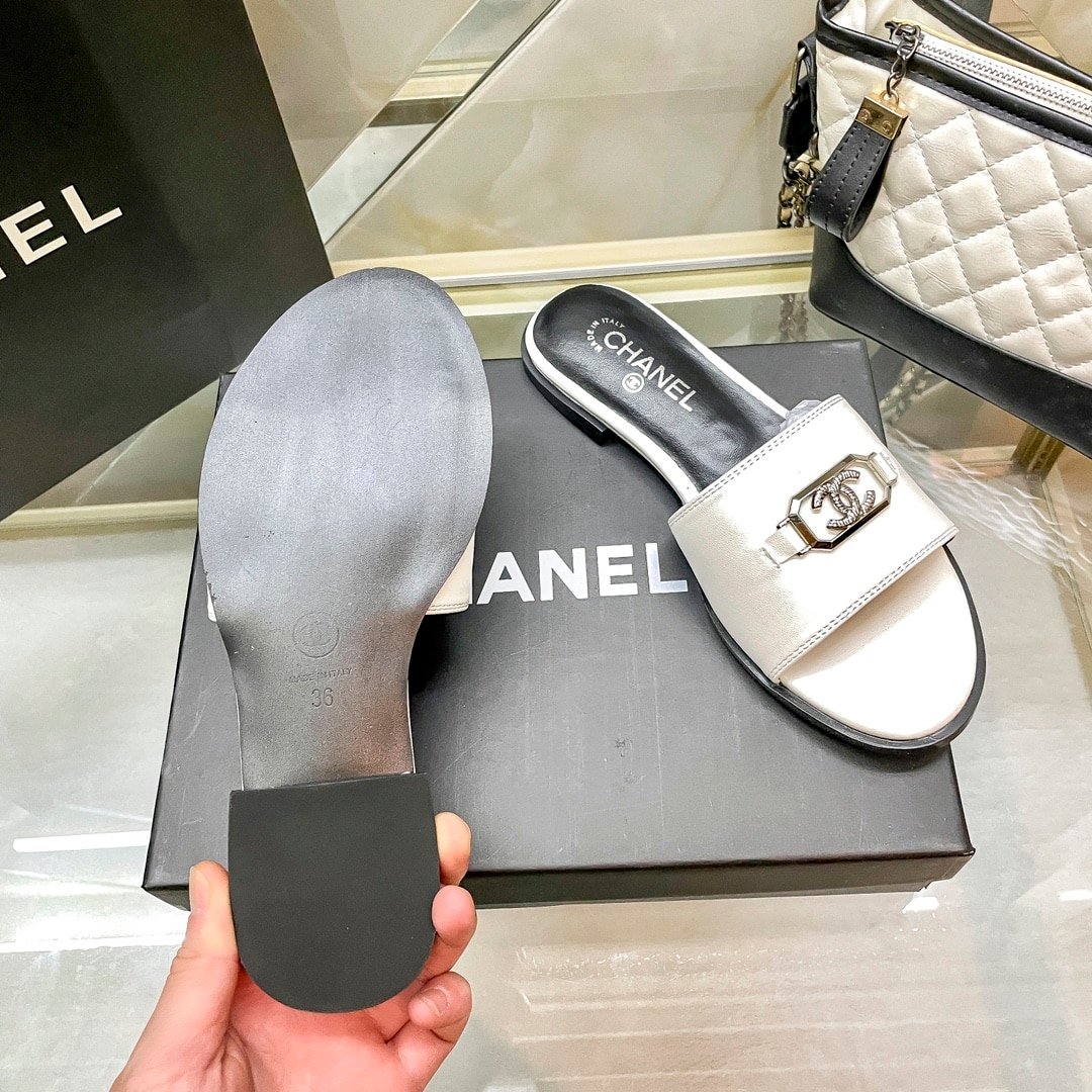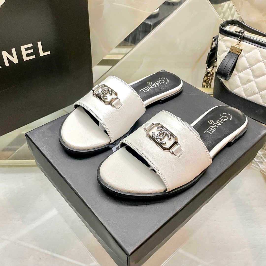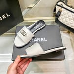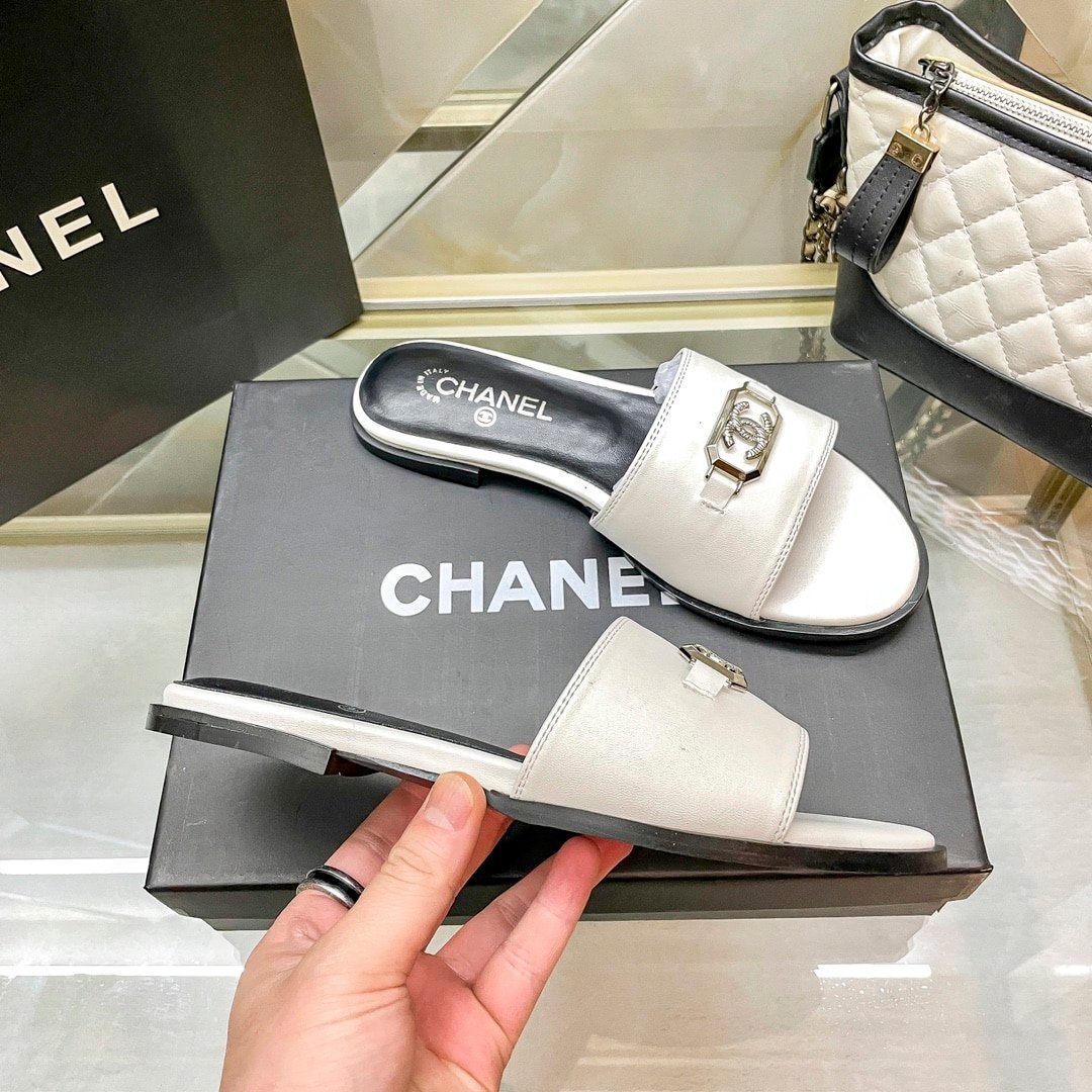 Chanel Slippers With Cc Silver Hardware White