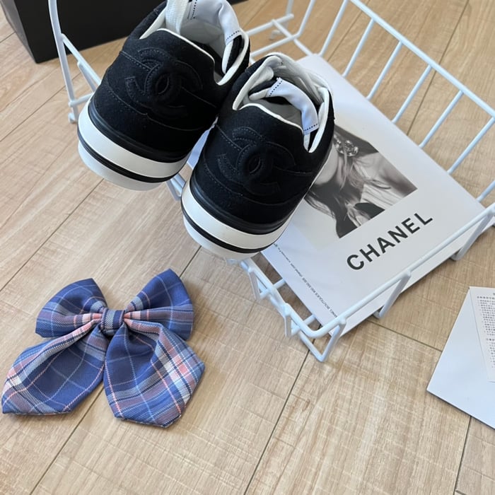 Chanel Printed Suede Calfskin Sneakers White And Black G39230 X56653 94305
