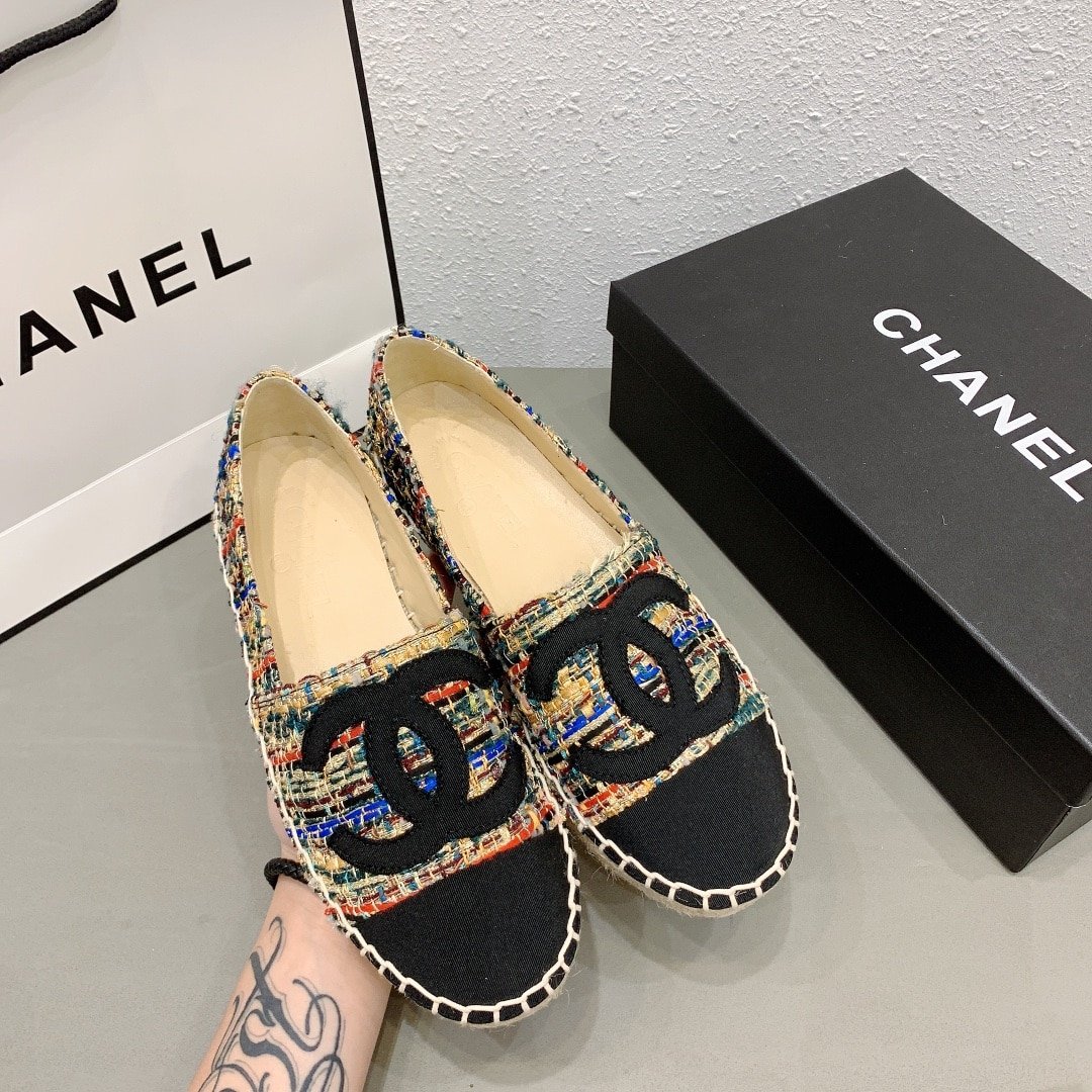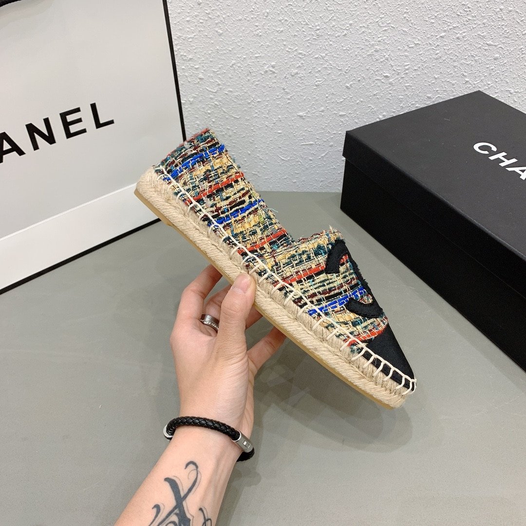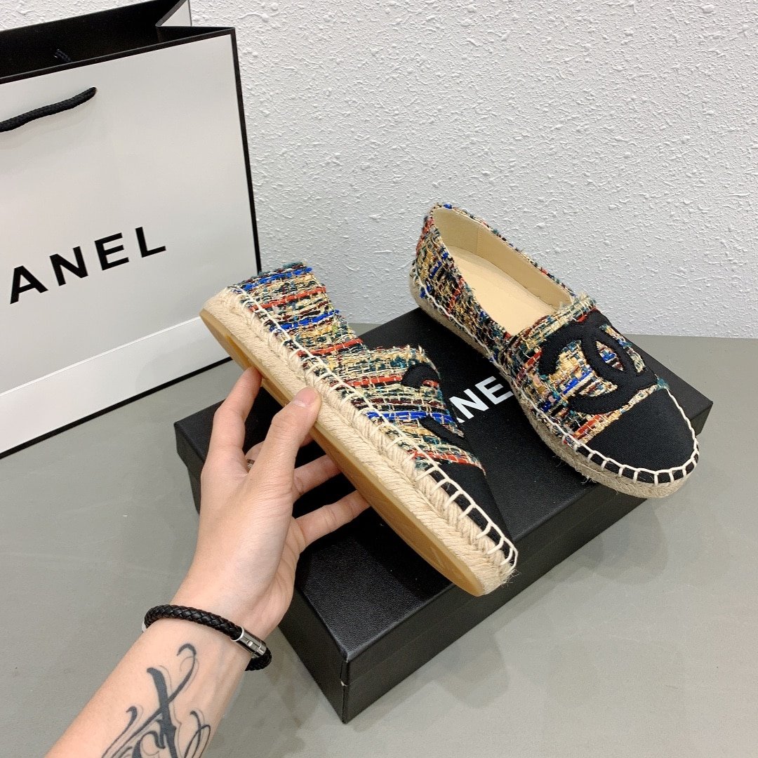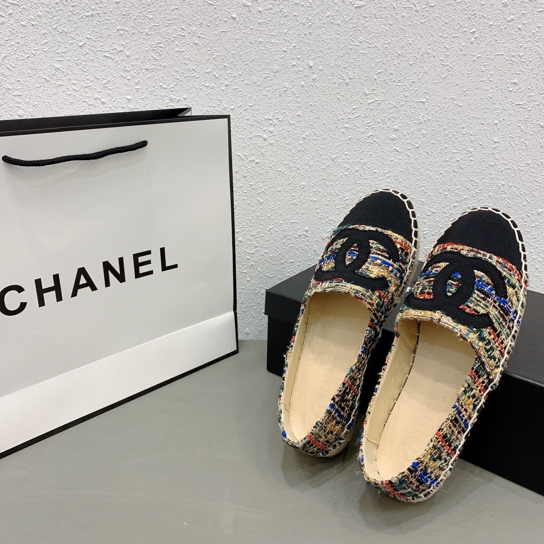 Chanel Tweed Grosgrain Cc Espadrilles Slip On Multicolor Black