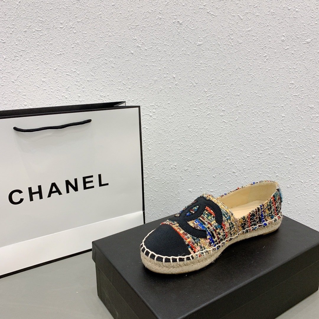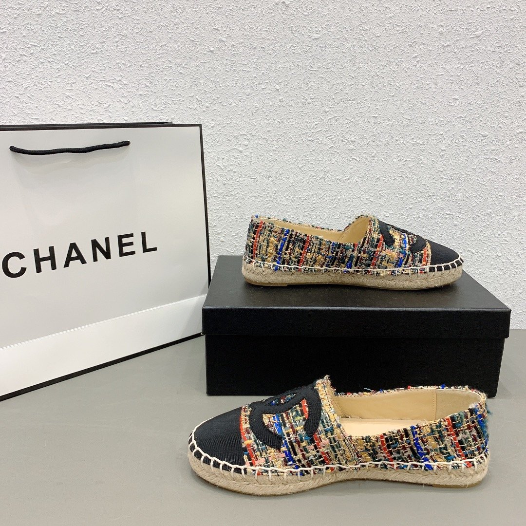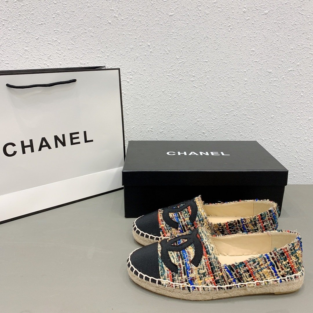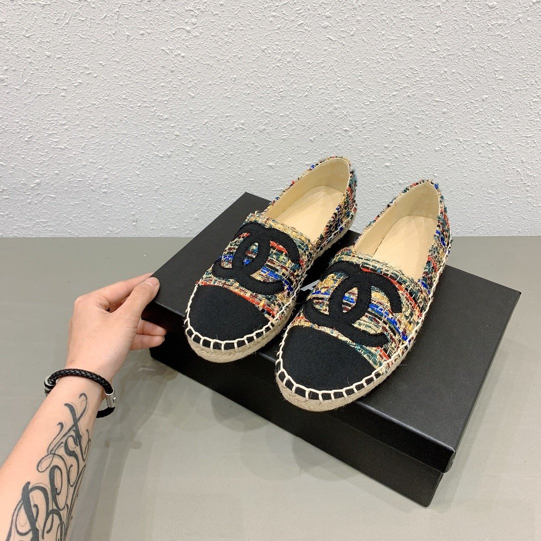 Chanel Tweed Grosgrain Cc Espadrilles Slip On Multicolor Black