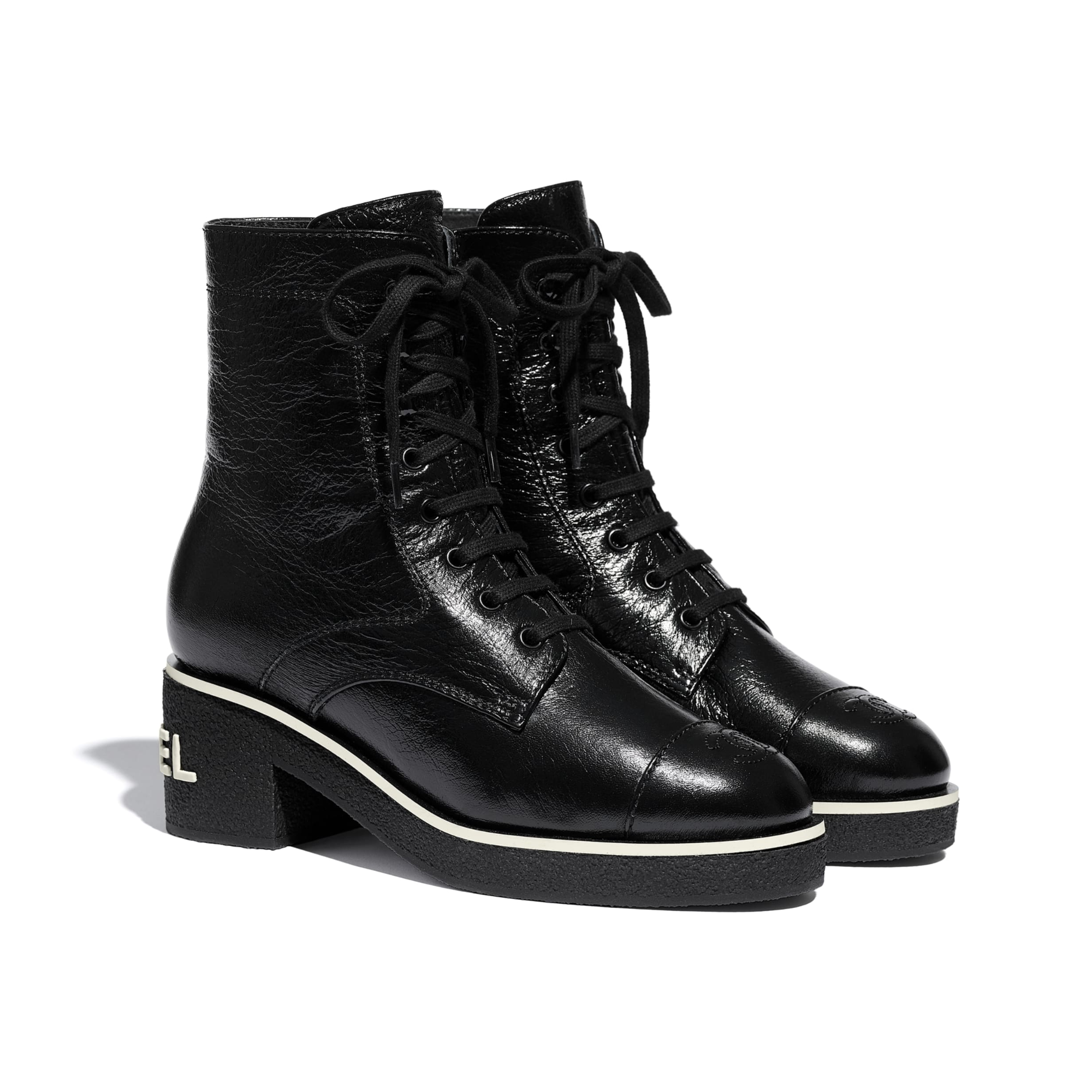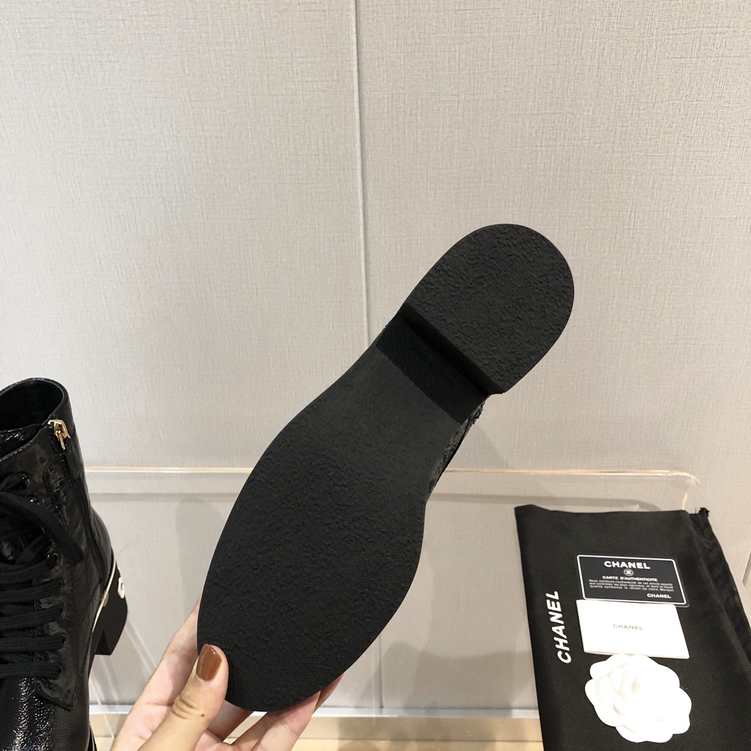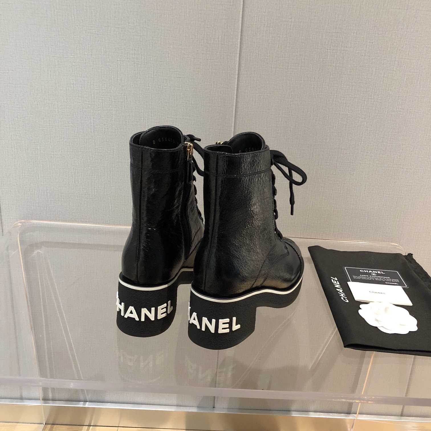 Chanel White Logo Crinkled Leather Combat Boots For Women