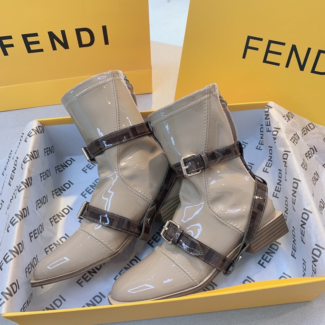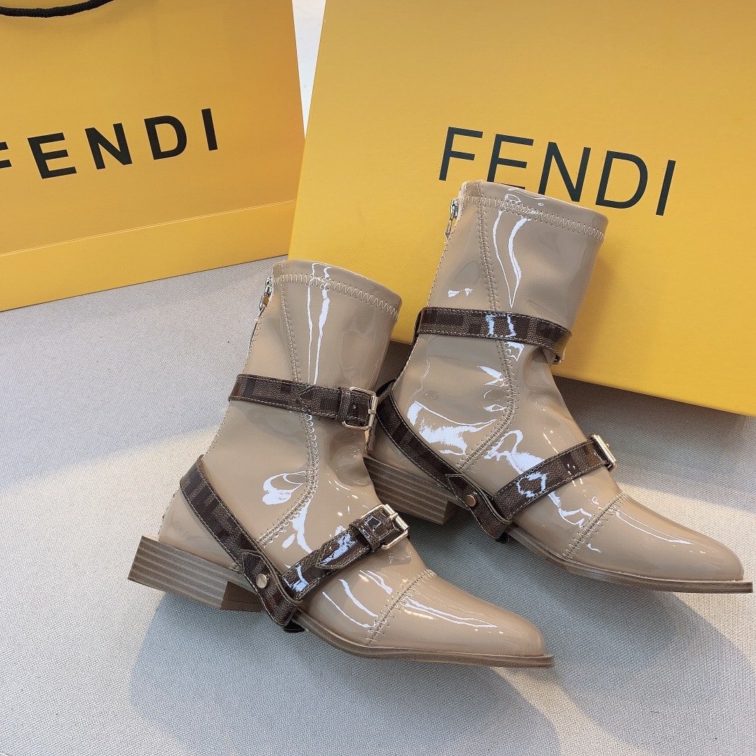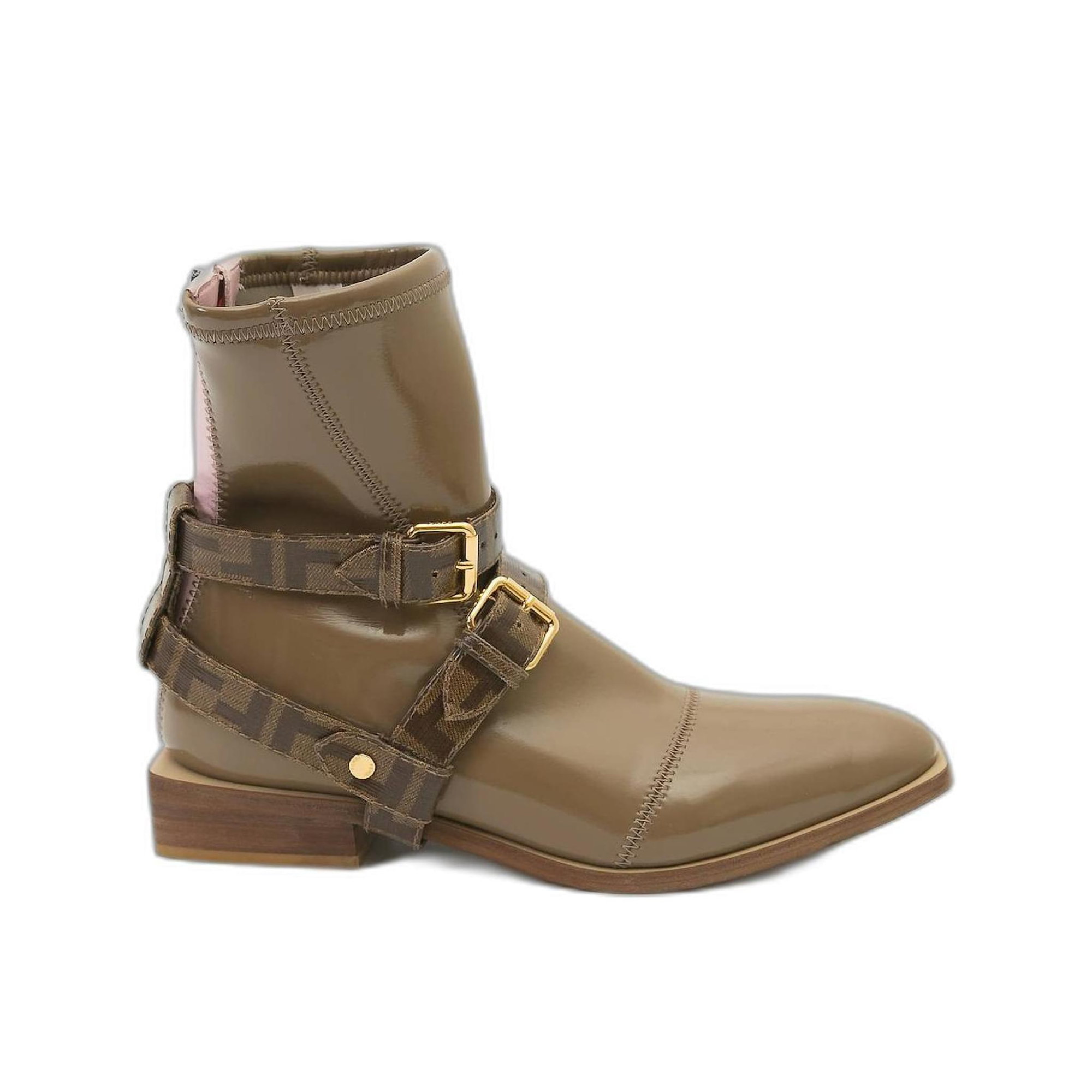 Fendi Buckle Patent Neoprenefendi Short Flat Boots Brown