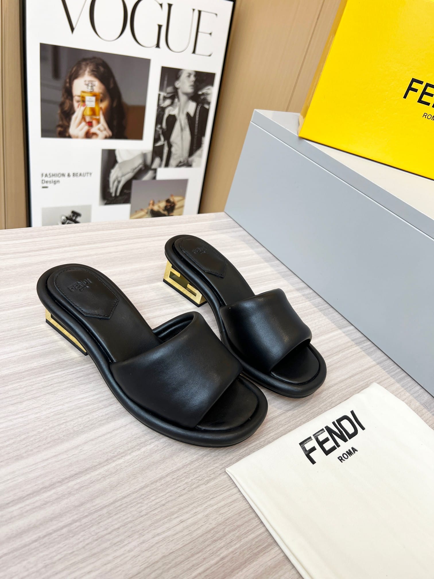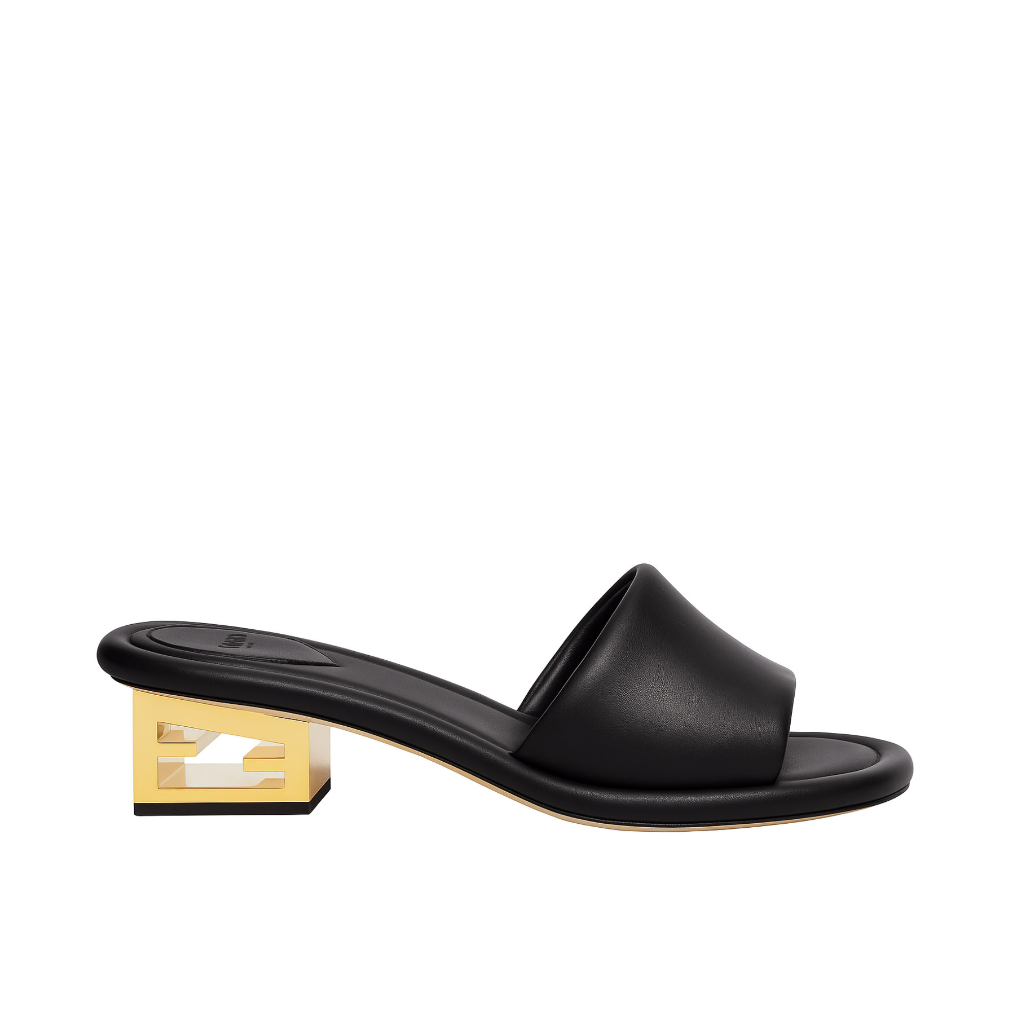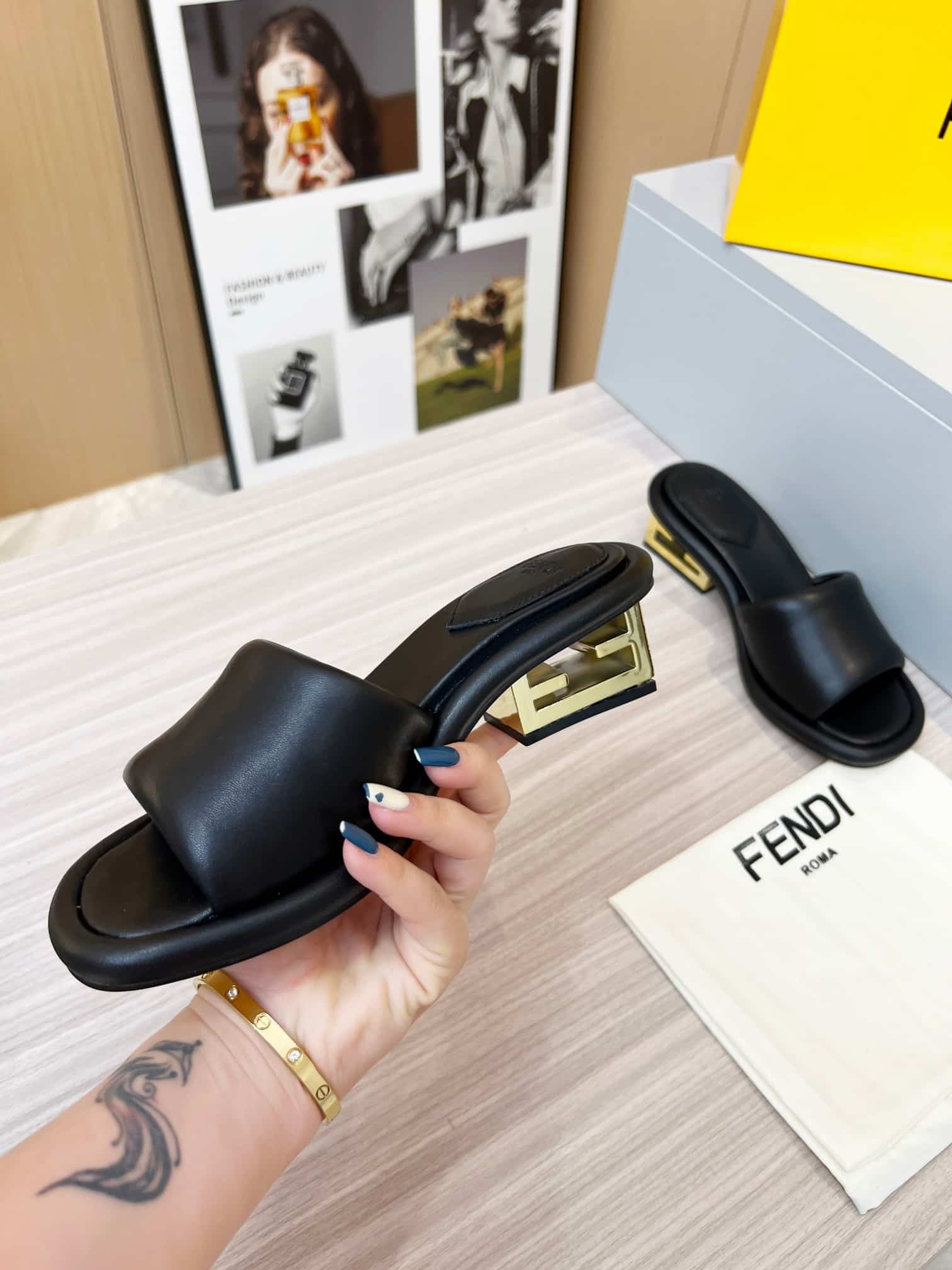 Fendi Cutout Metal Block Heel Padded Leather Sandals Black