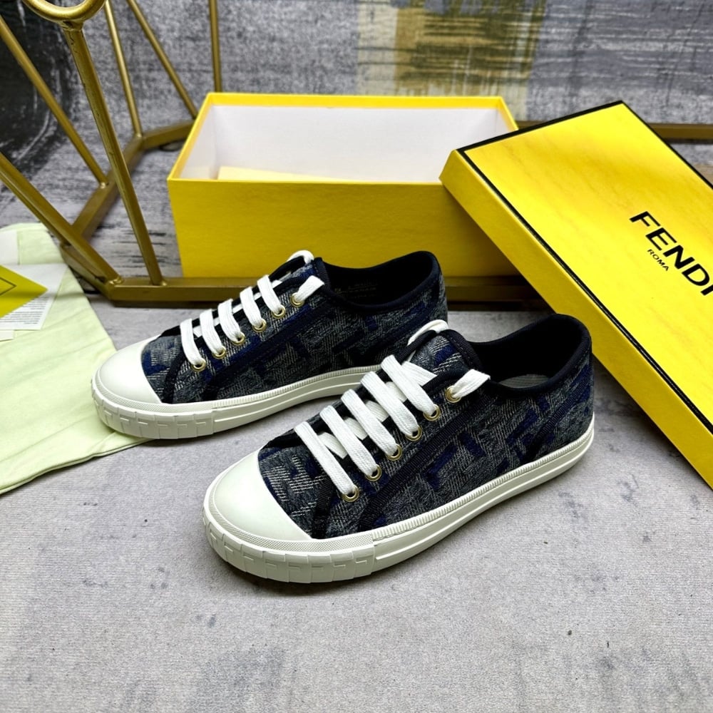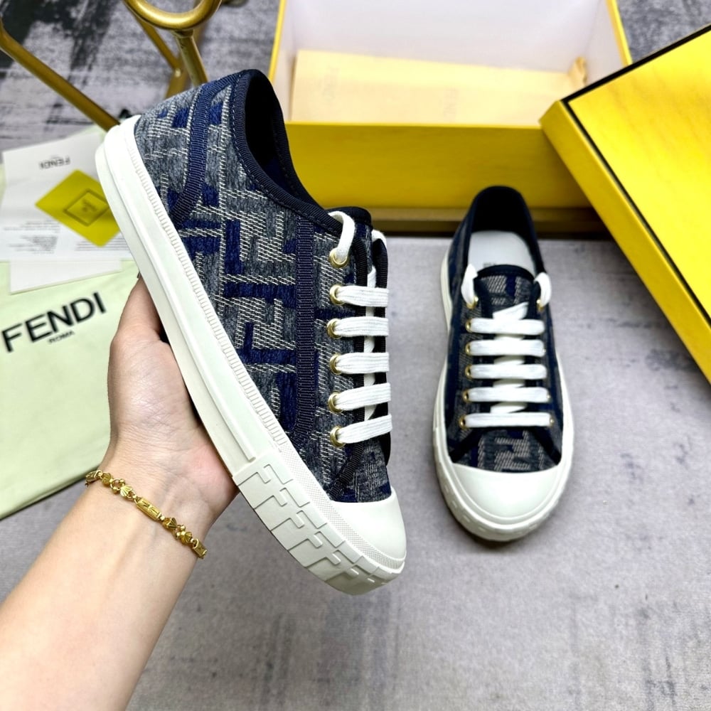 Fendi Domino Ff Denim Low Top Sneakers Blue