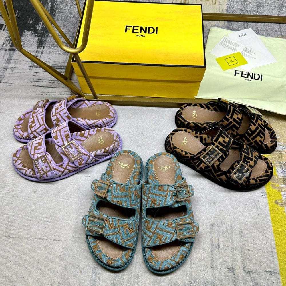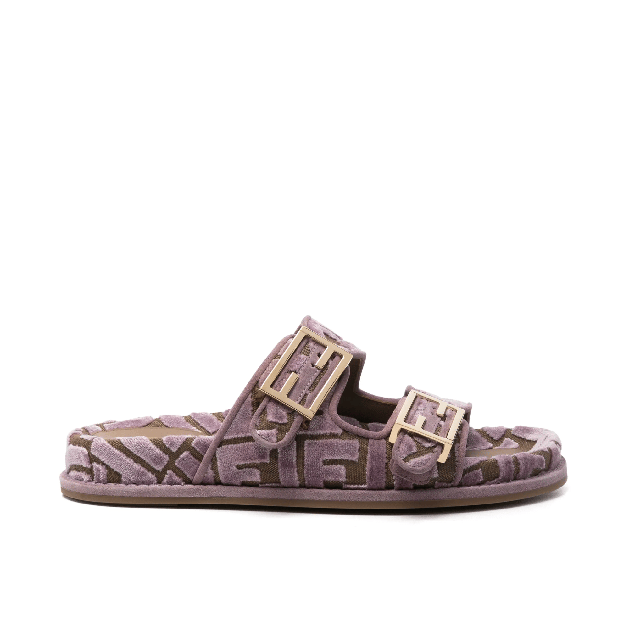 Fendi Feel Ff Jacquard Velvet Slides Amethyst Purple