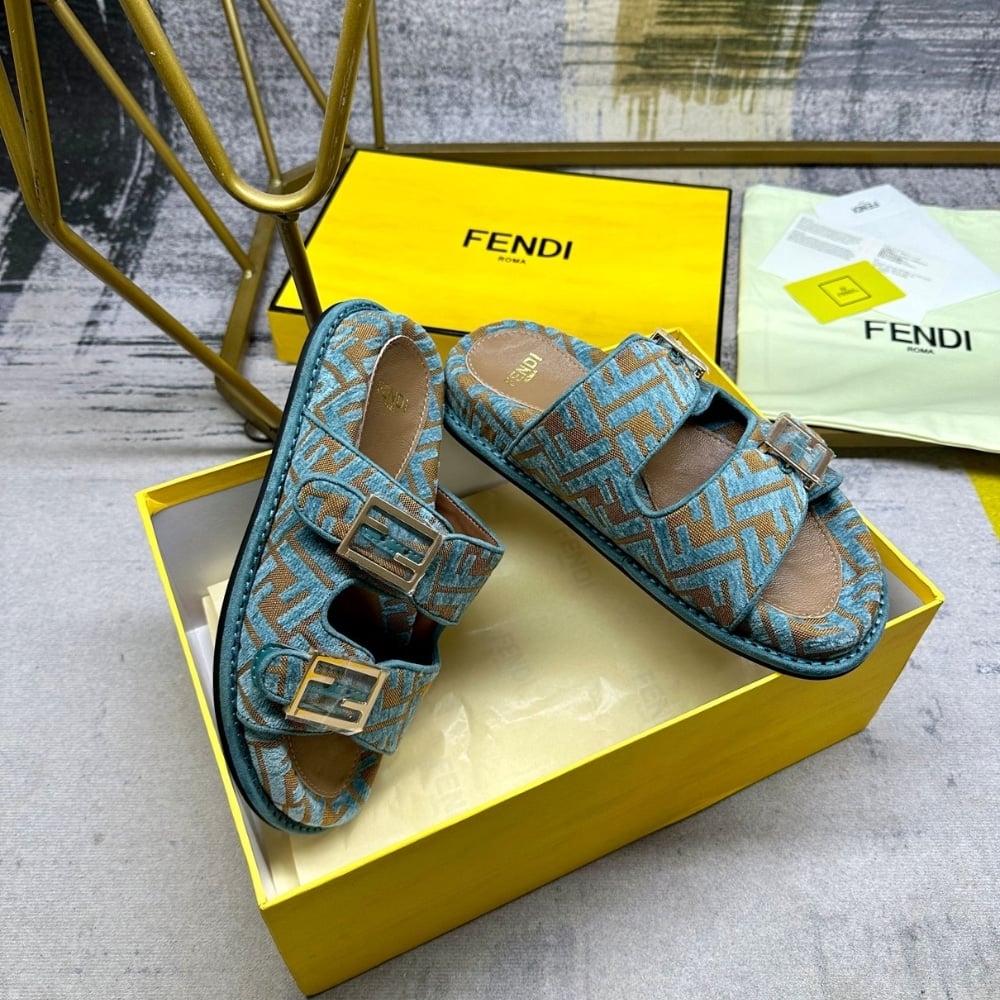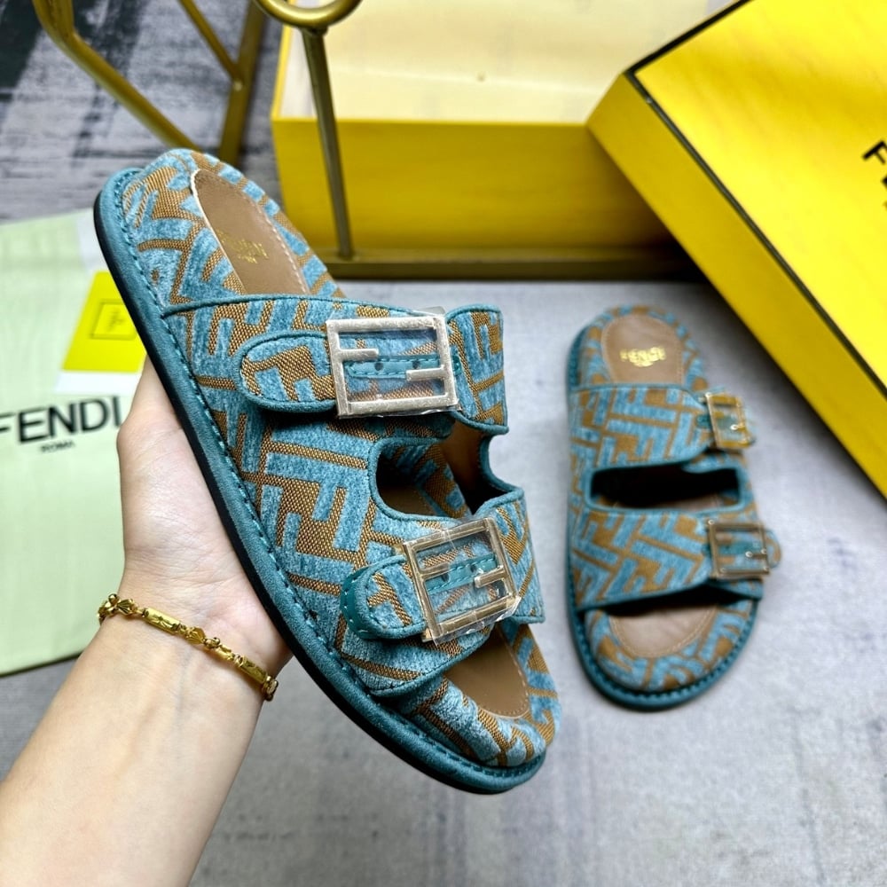 Fendi Feel Ff Jacquard Velvet Slides Light Blue 8X8326Aotmf1R88