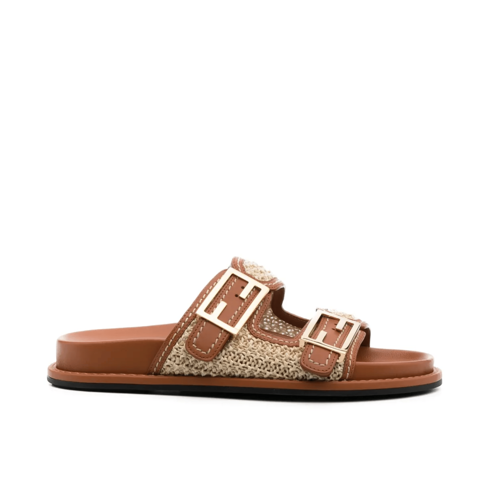 Fendi Baguette Raffia Slide Sandal Natural Neutral