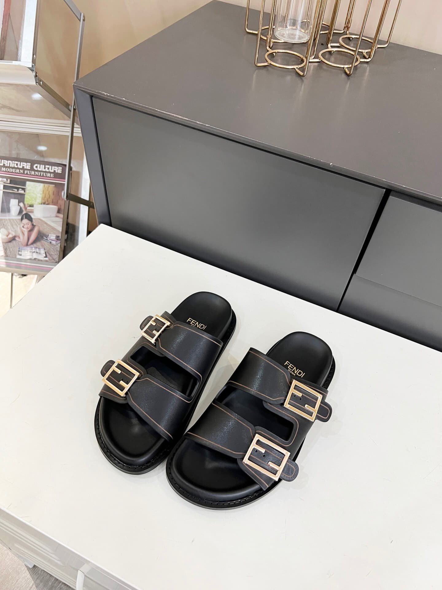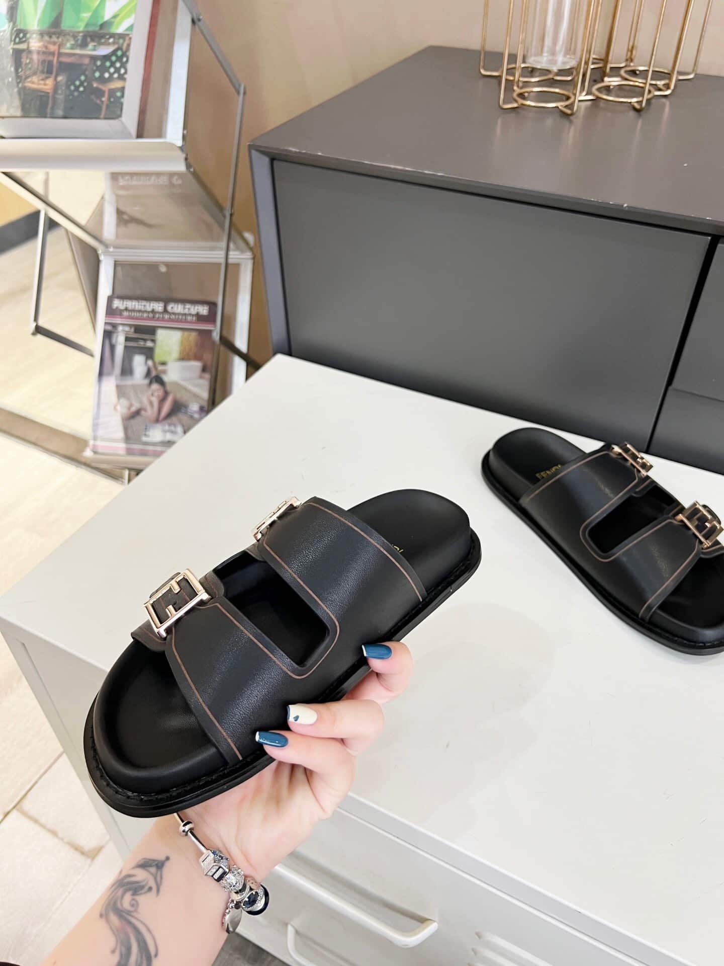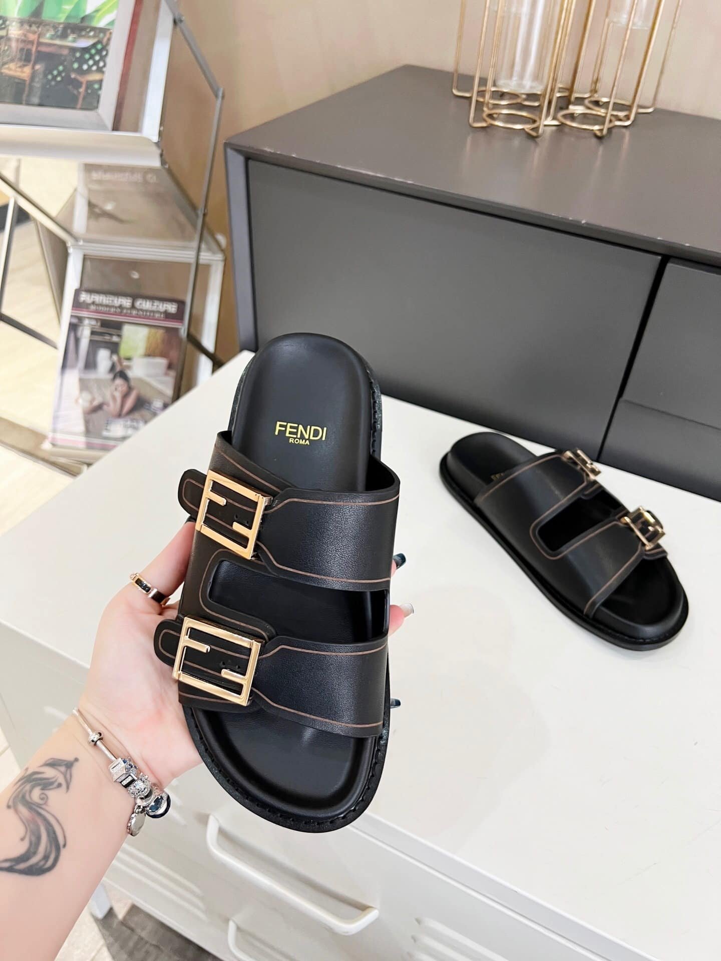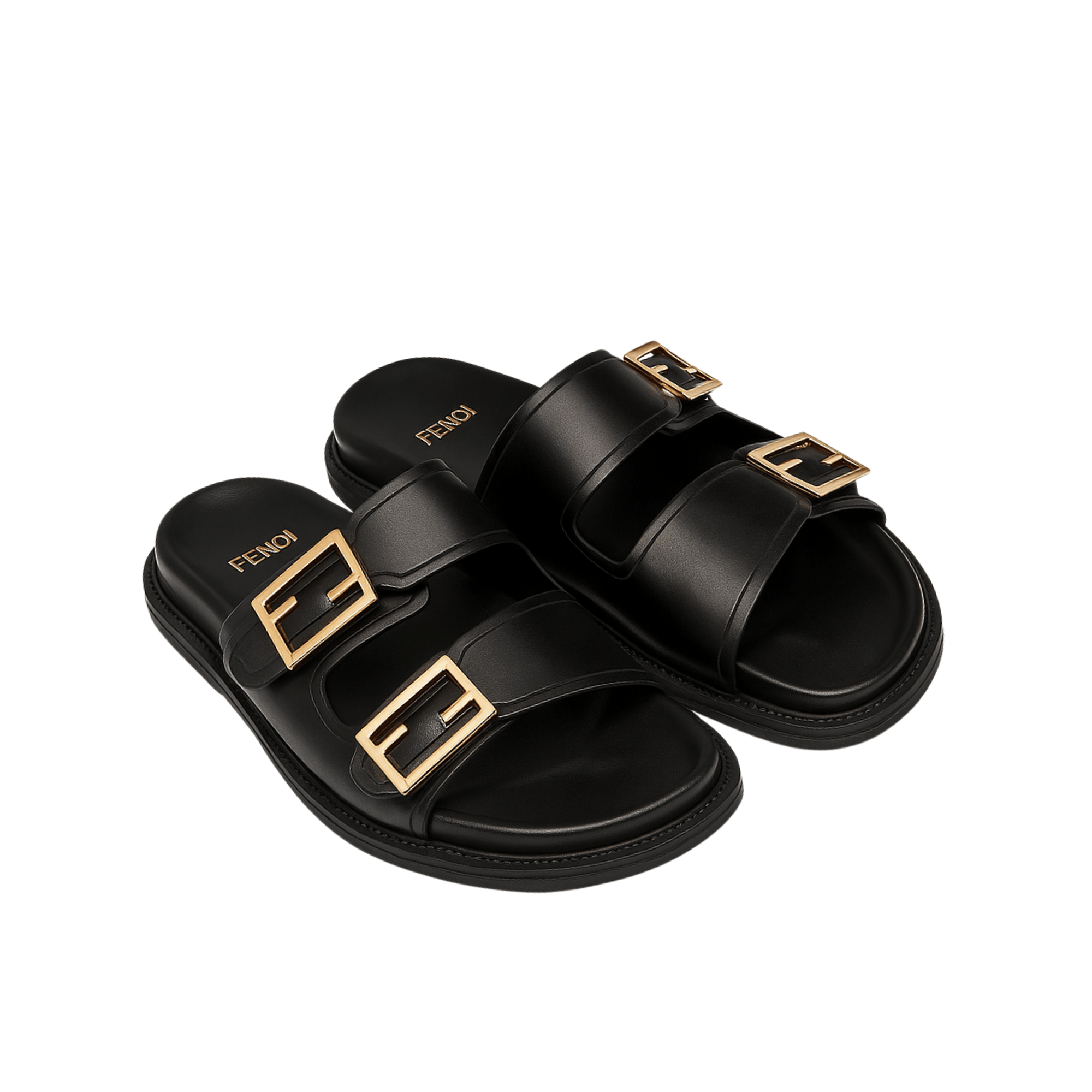 Fendi Feel Leather Slides Black