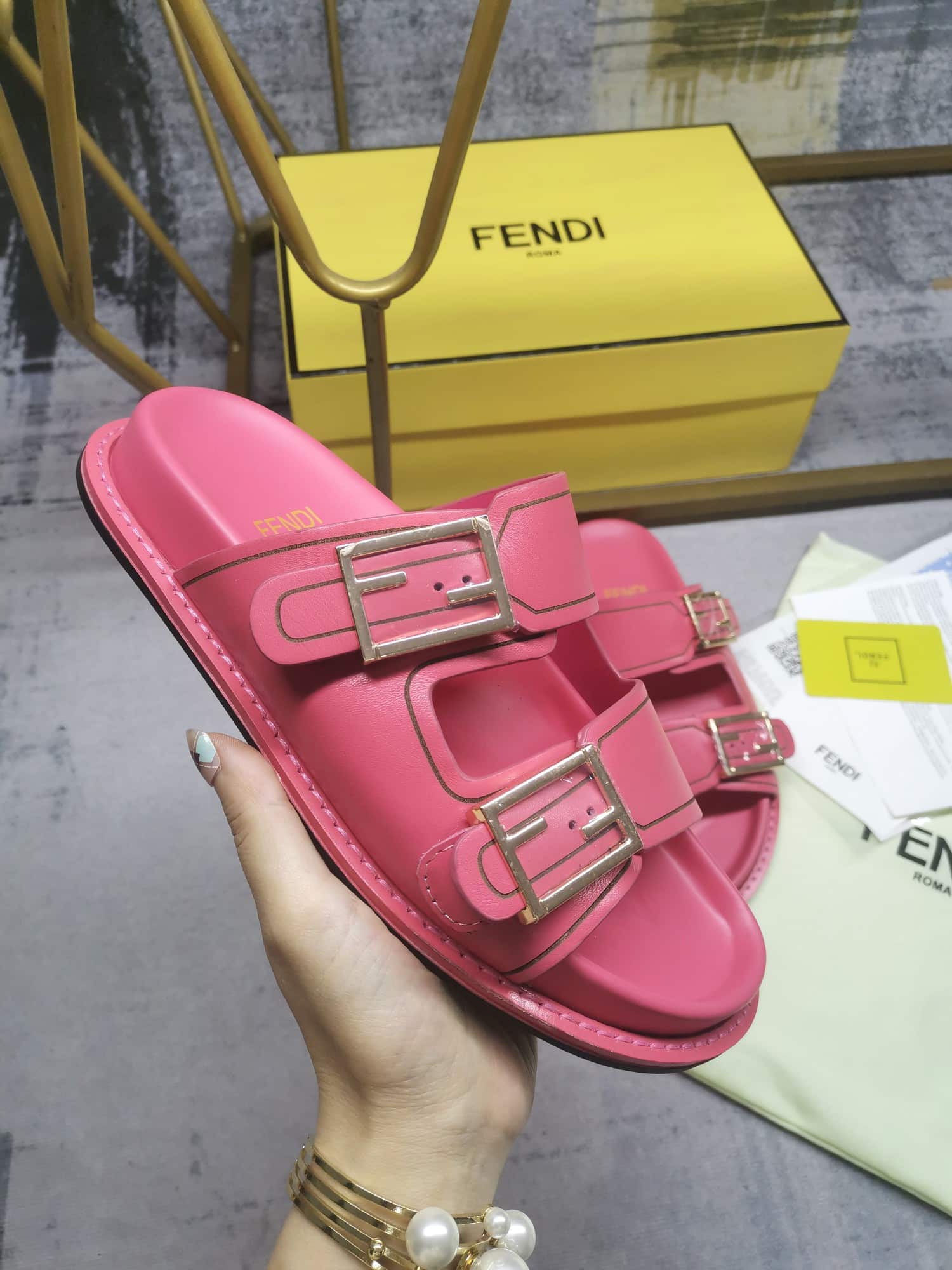 Fendi Feel Leather Slides Pink 8X8326Na7F1K9Y
