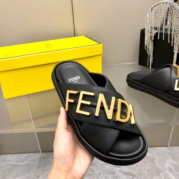 Fendi Fendigraphy Leather Slides Black 8X8289Ai1Rf1H1K