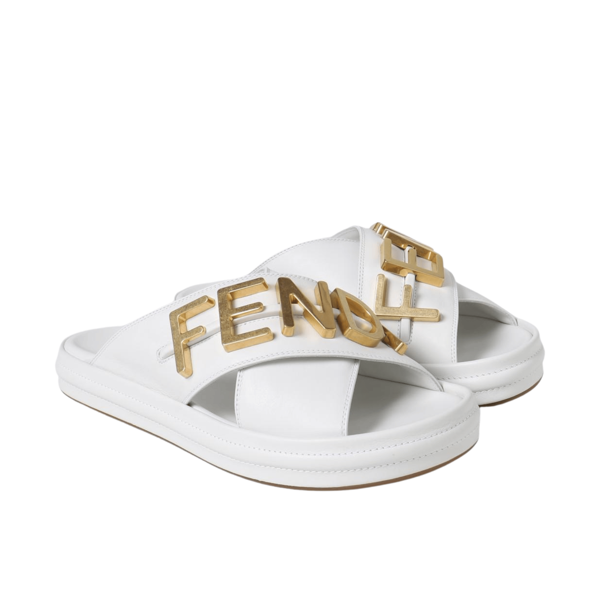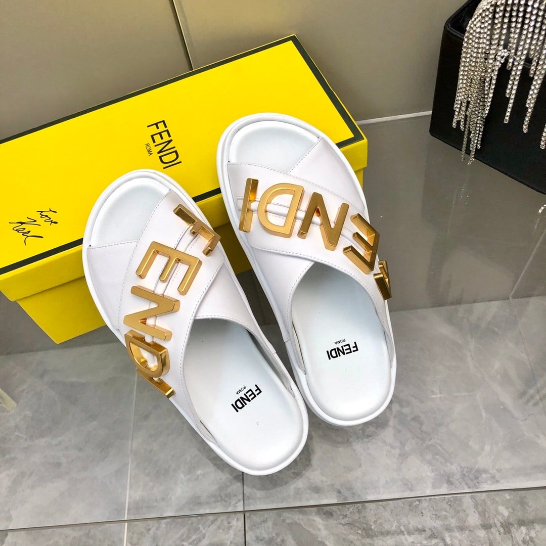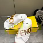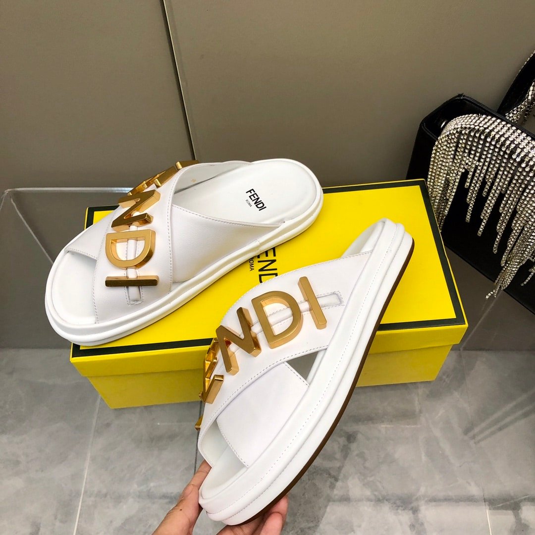 Fendi Fendigraphy Leather Slides White