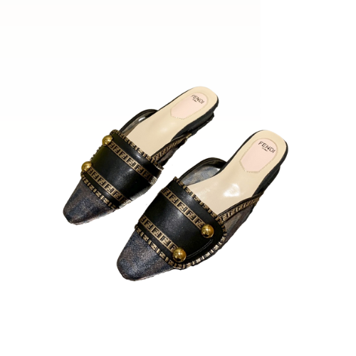 Fendi Logo-Embroidered Mule Slides Light Grey
