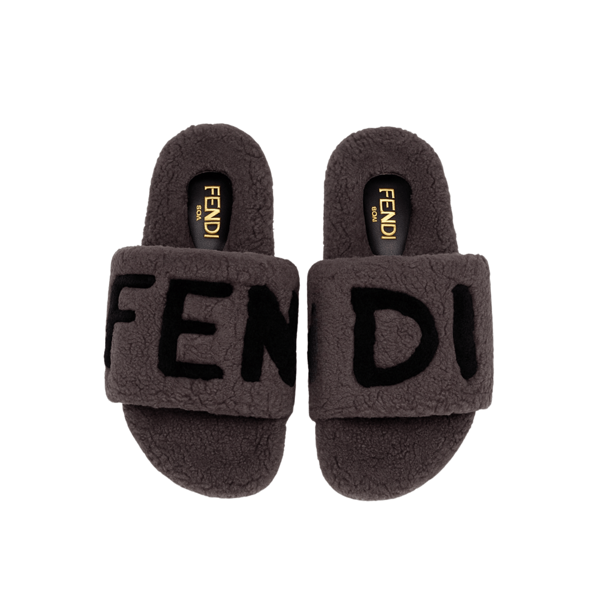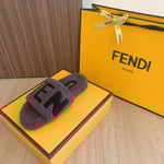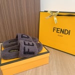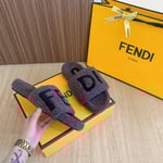 Fendi Fleece Black Text Slippers Grey
