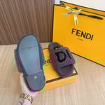 Fendi Feel Dove Grey Ff Chenille Slides White