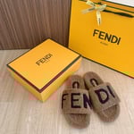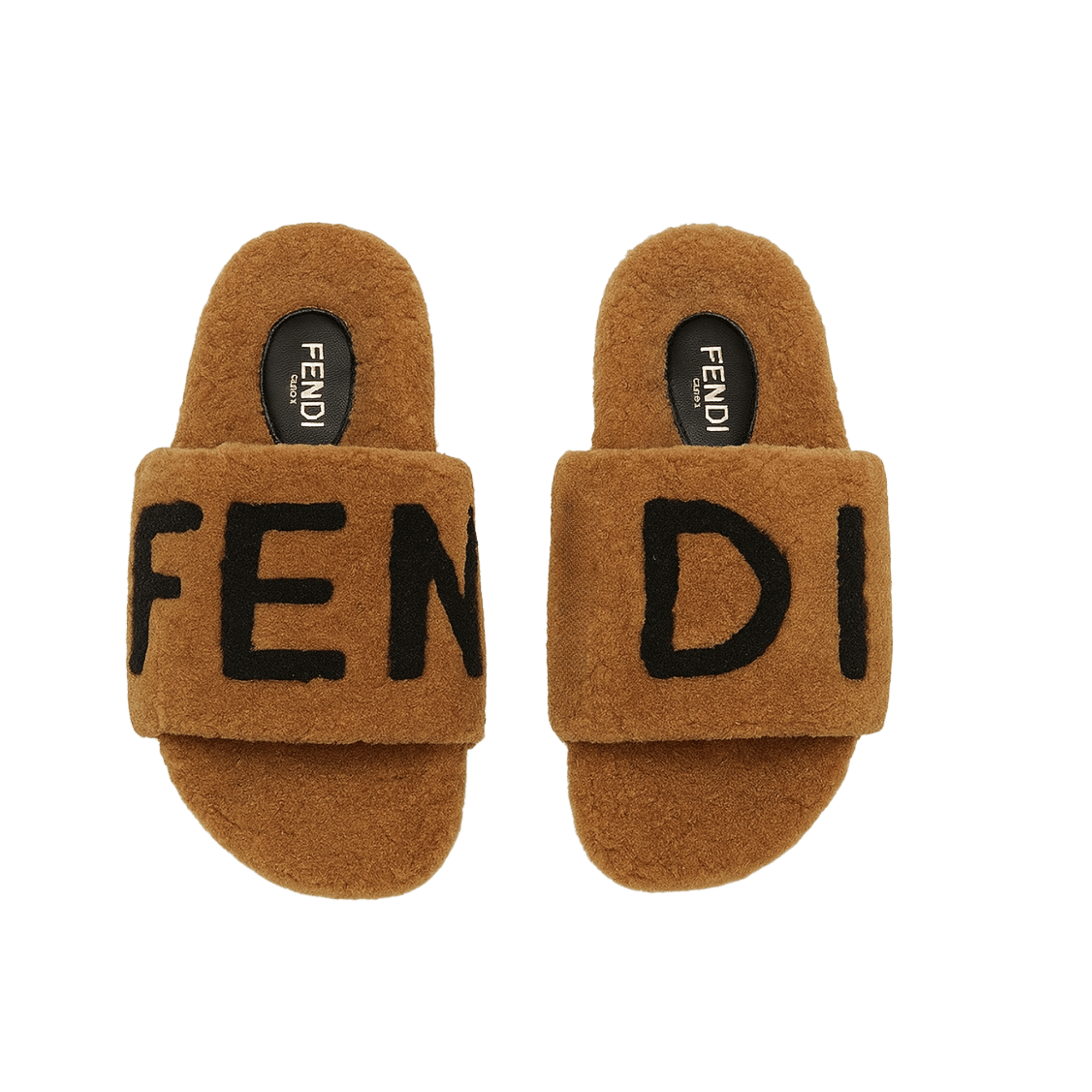 Fendi Logo-Embroidered Mule Slides Light Grey