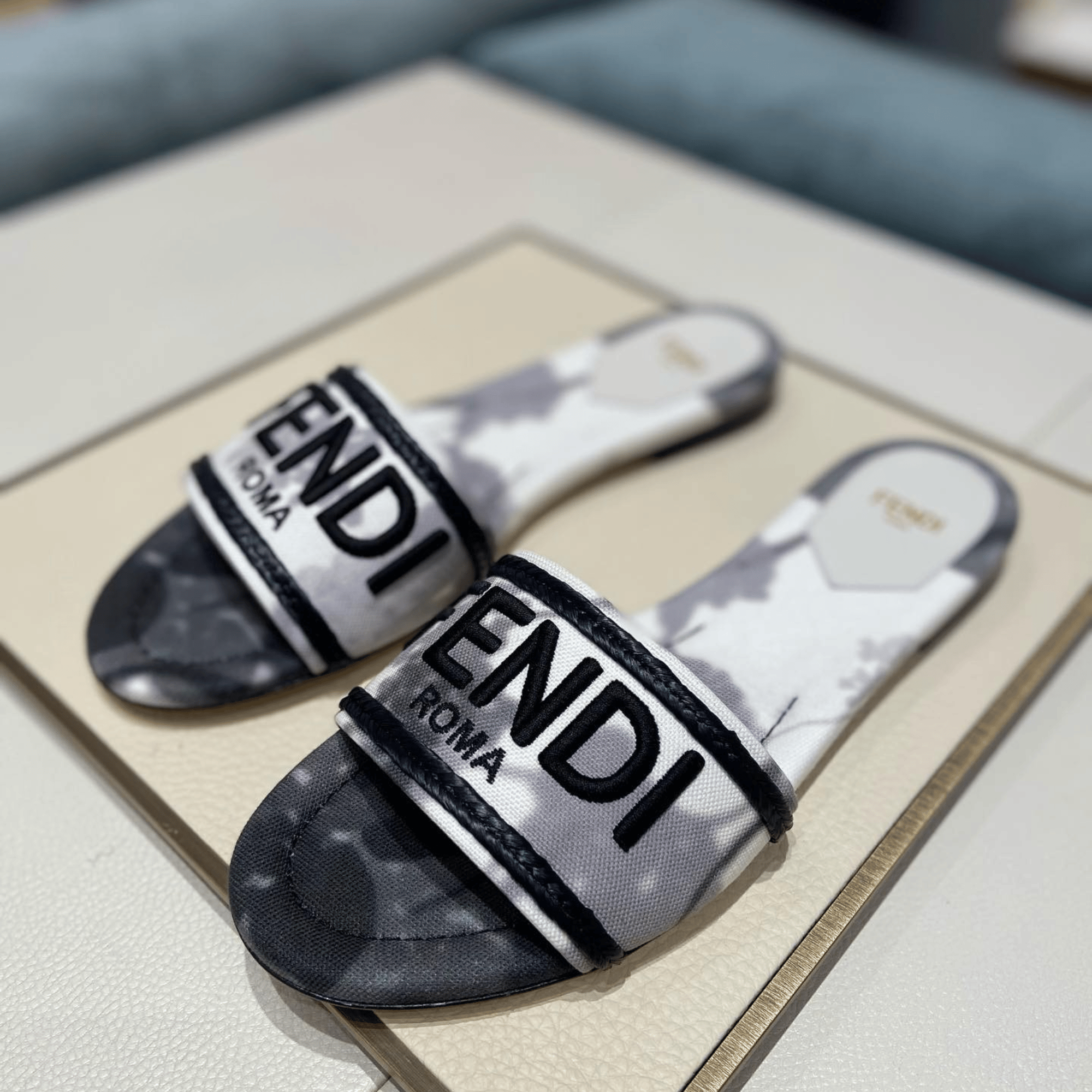 Fendi Feel Dove Grey Ff Chenille Slides White
