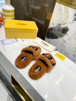 Fendi Logo-Embroidered Mule Slides Light Grey