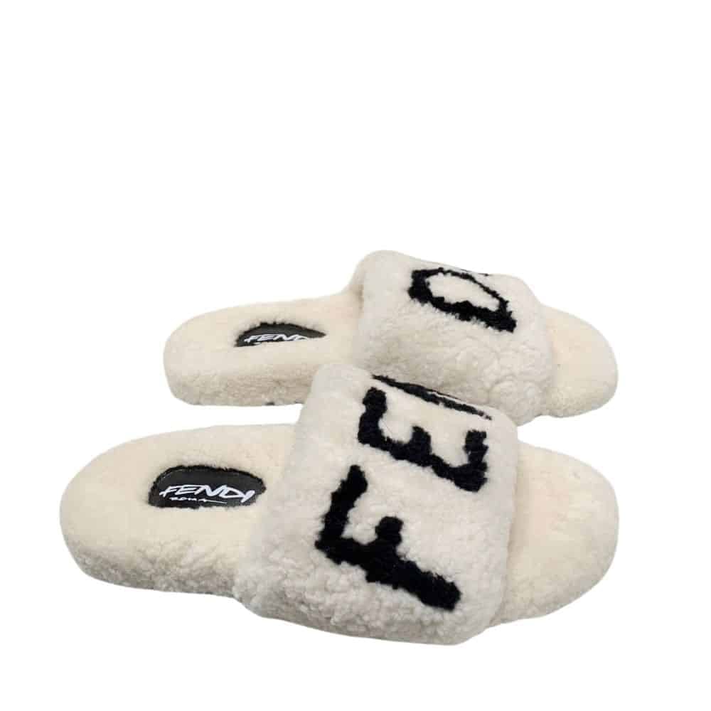 Fendi Shearling Slides White