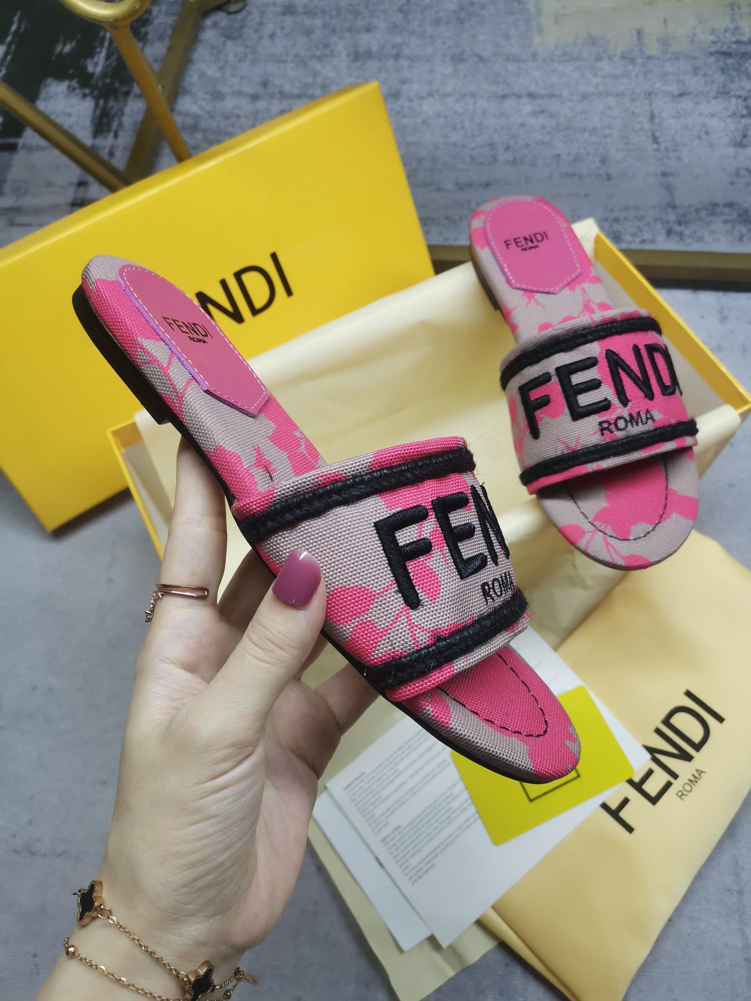 Fendi Signature Canvas Slides Pink 8R8092An7Mf1Kou