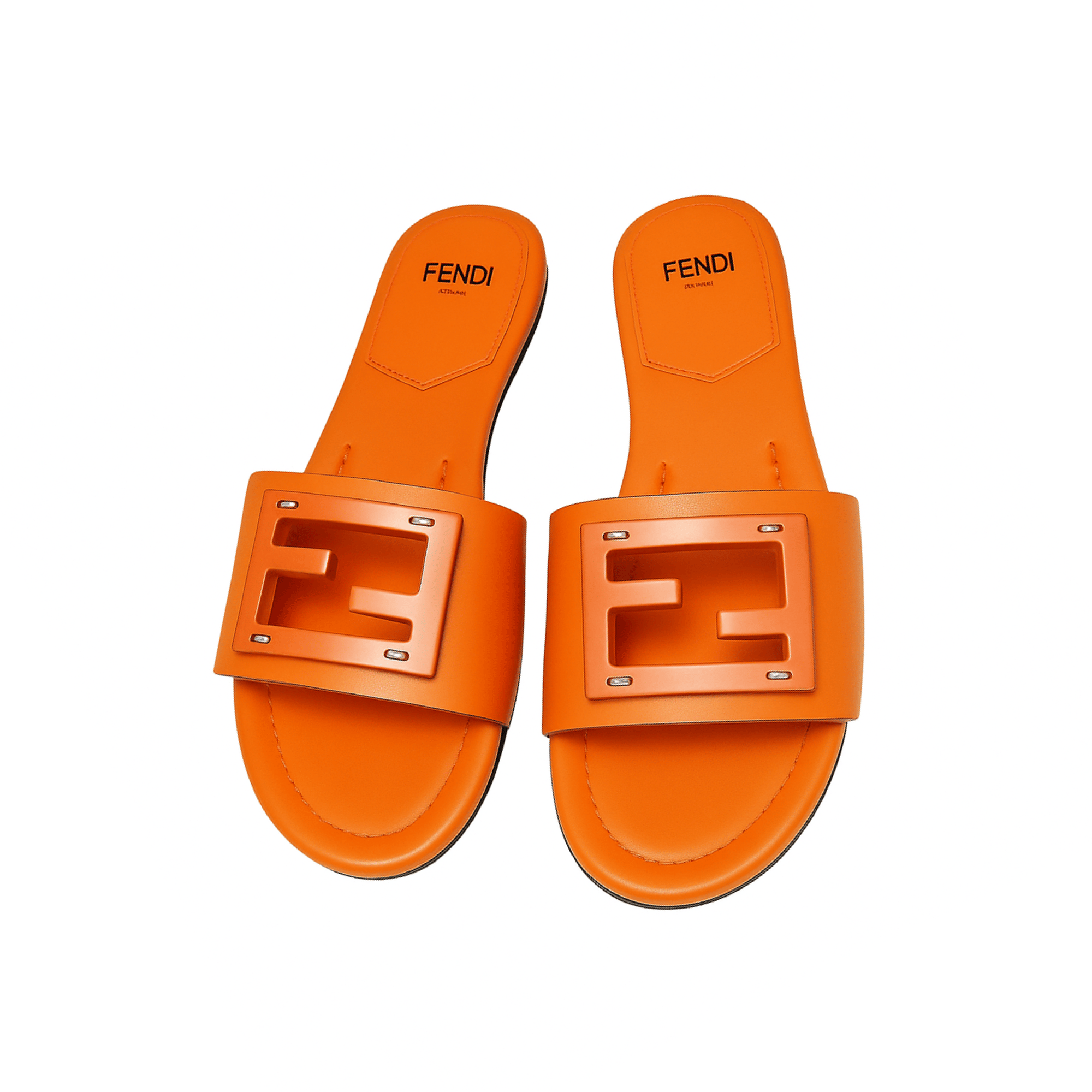 Fendi Baguette Raffia Slide Sandal Natural Neutral