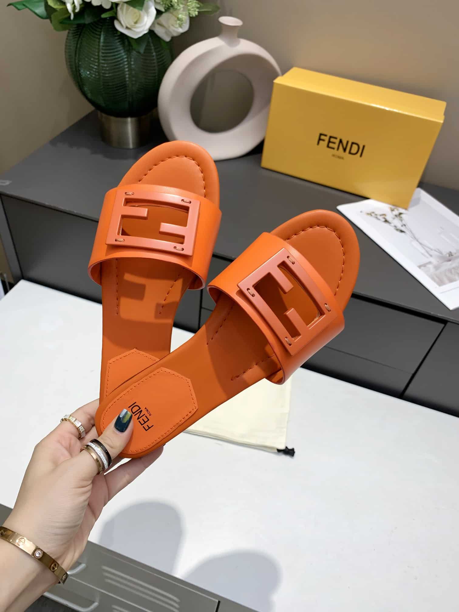 Fendi Cutout Metal Block Heel Padded Leather Sandals Black
