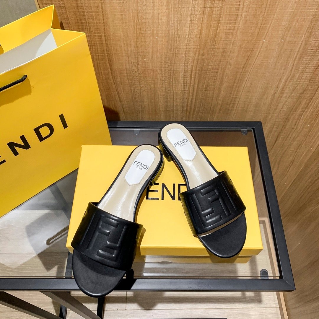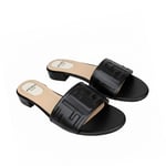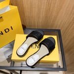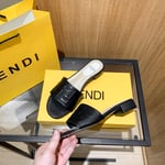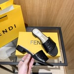 Fendi Silk Cowhide Slippers Black