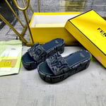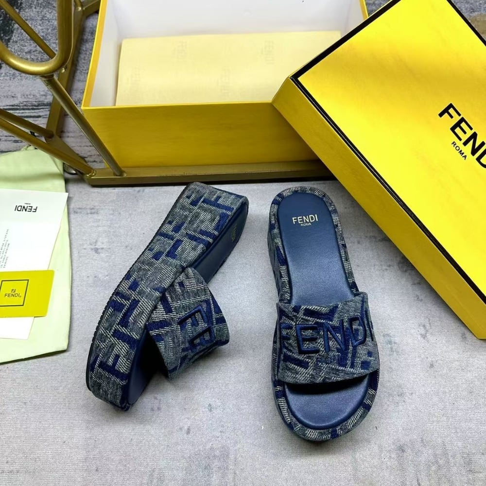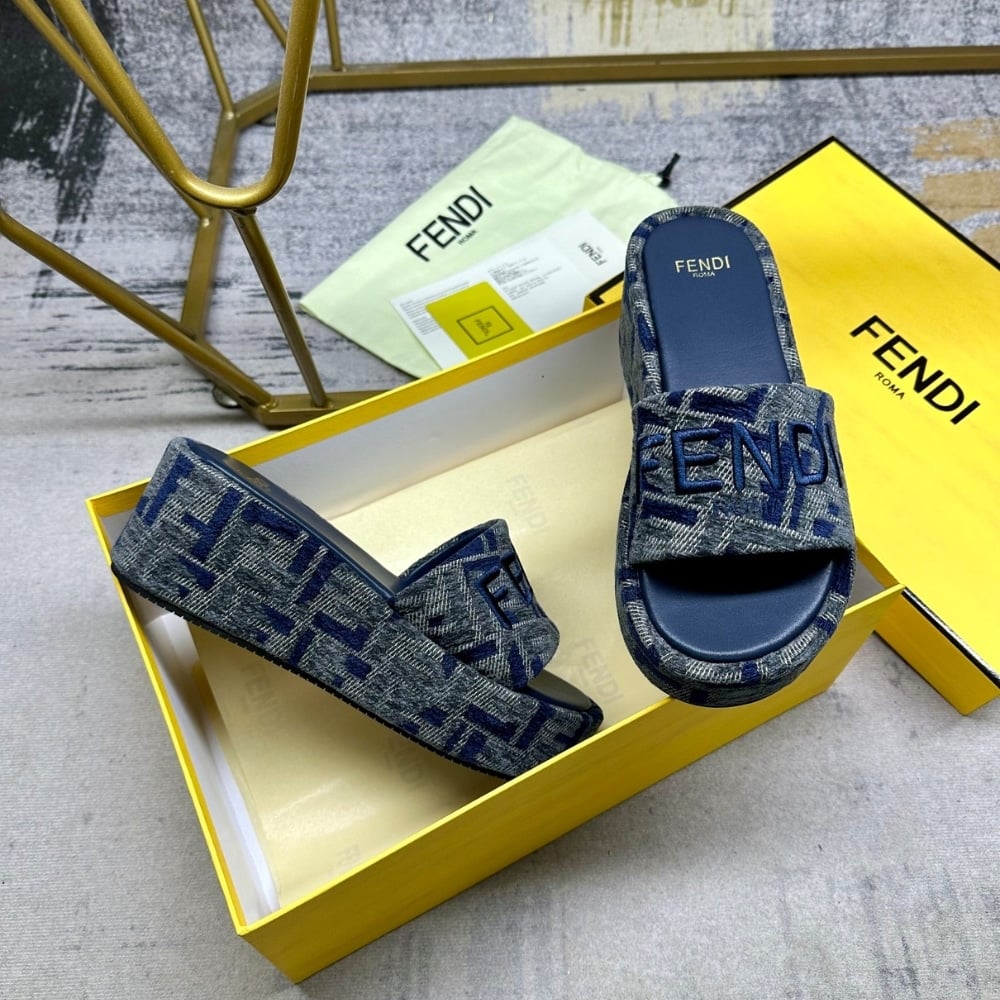 Fendi Sunshine Ff Denim Flatform Slides Blue 8R8515Aosif1Pze