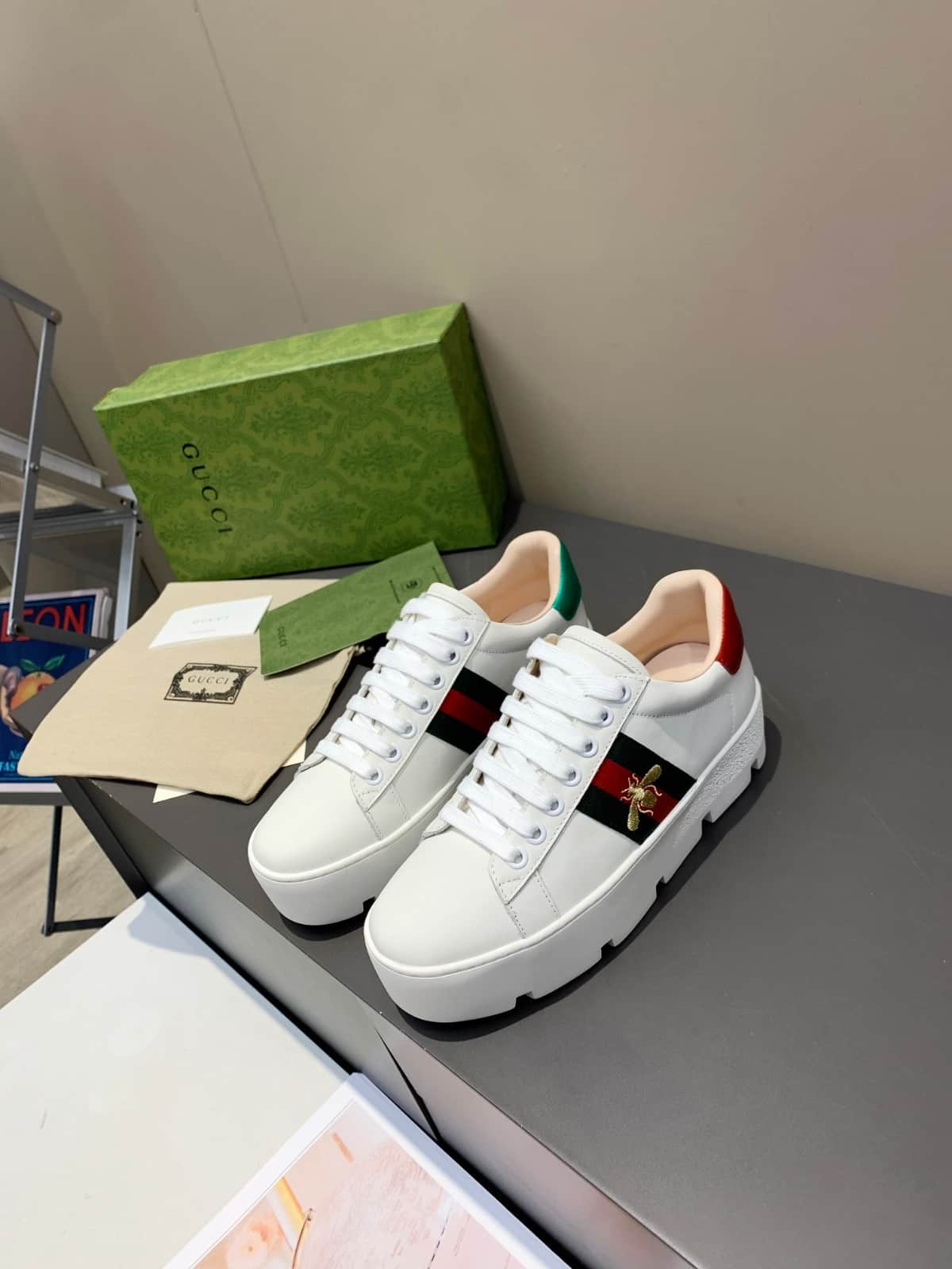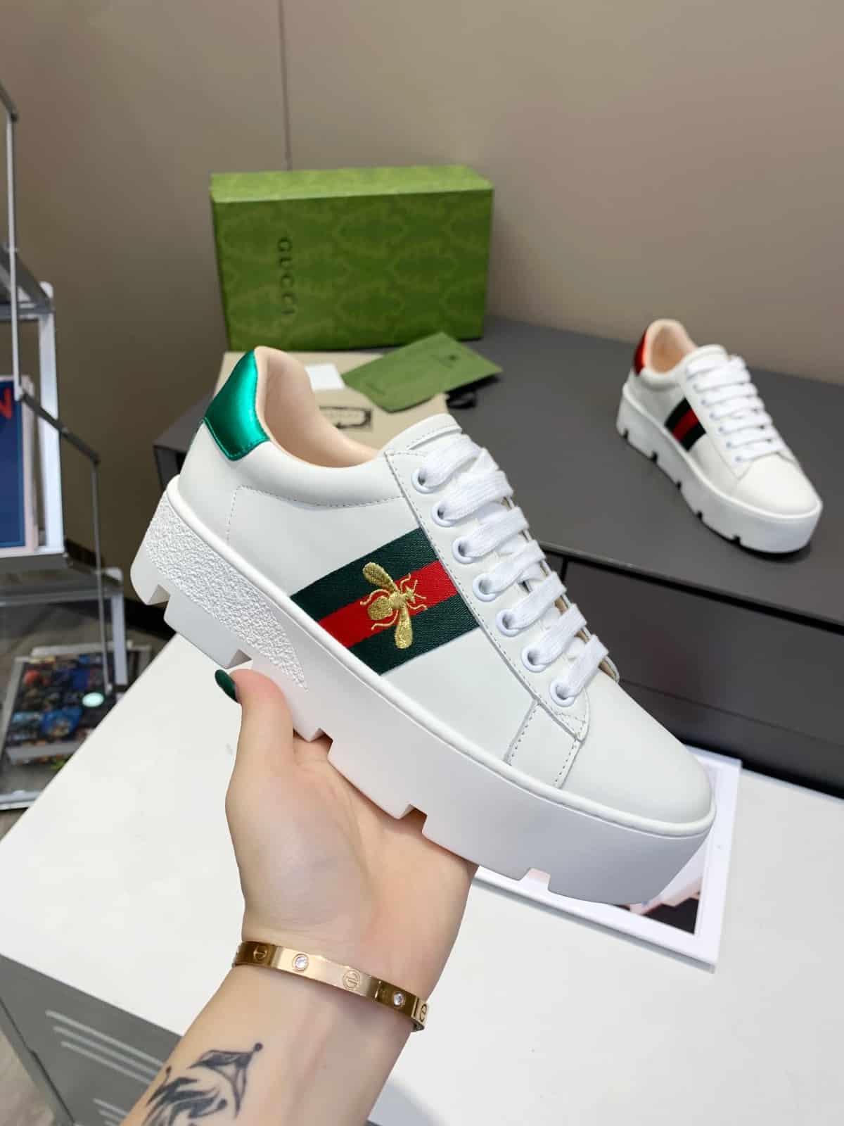 Gucci Ace Embroidered Platform Sneaker ?White 577573 Dope0 9064