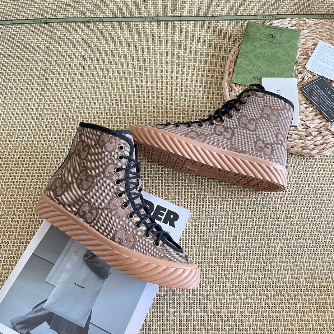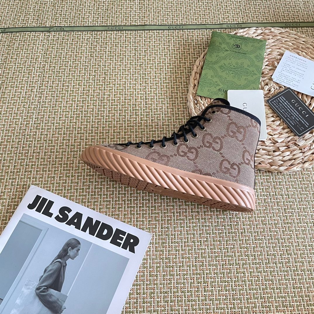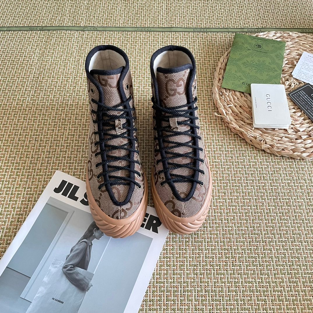 Gucci All Over Gg Logo High Top Sneakers Brown
