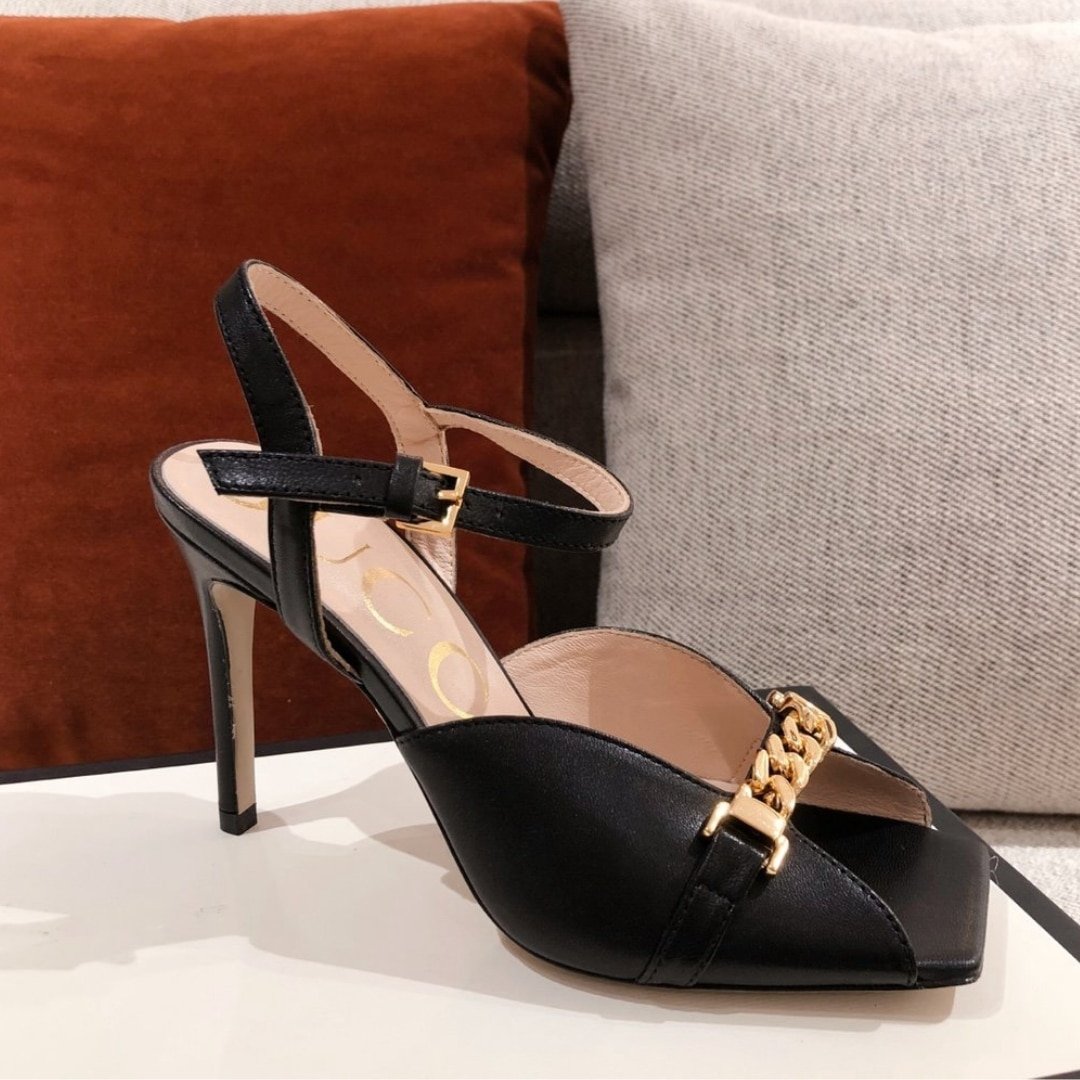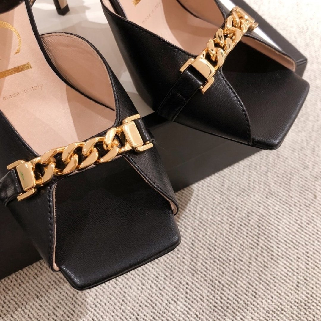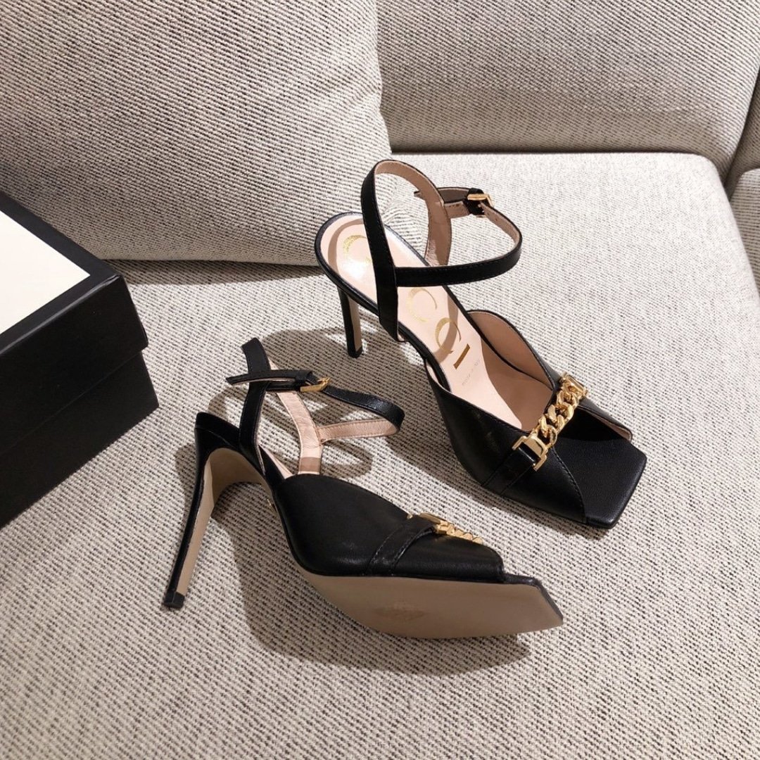 Home Shop Shoes Gucci Shoes Gucci Ankle Buckle Strap Sylvie Chain Sandals In Black
