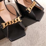 Gucci Ankle Buckle Strap Sylvie Chain Sandals In Black