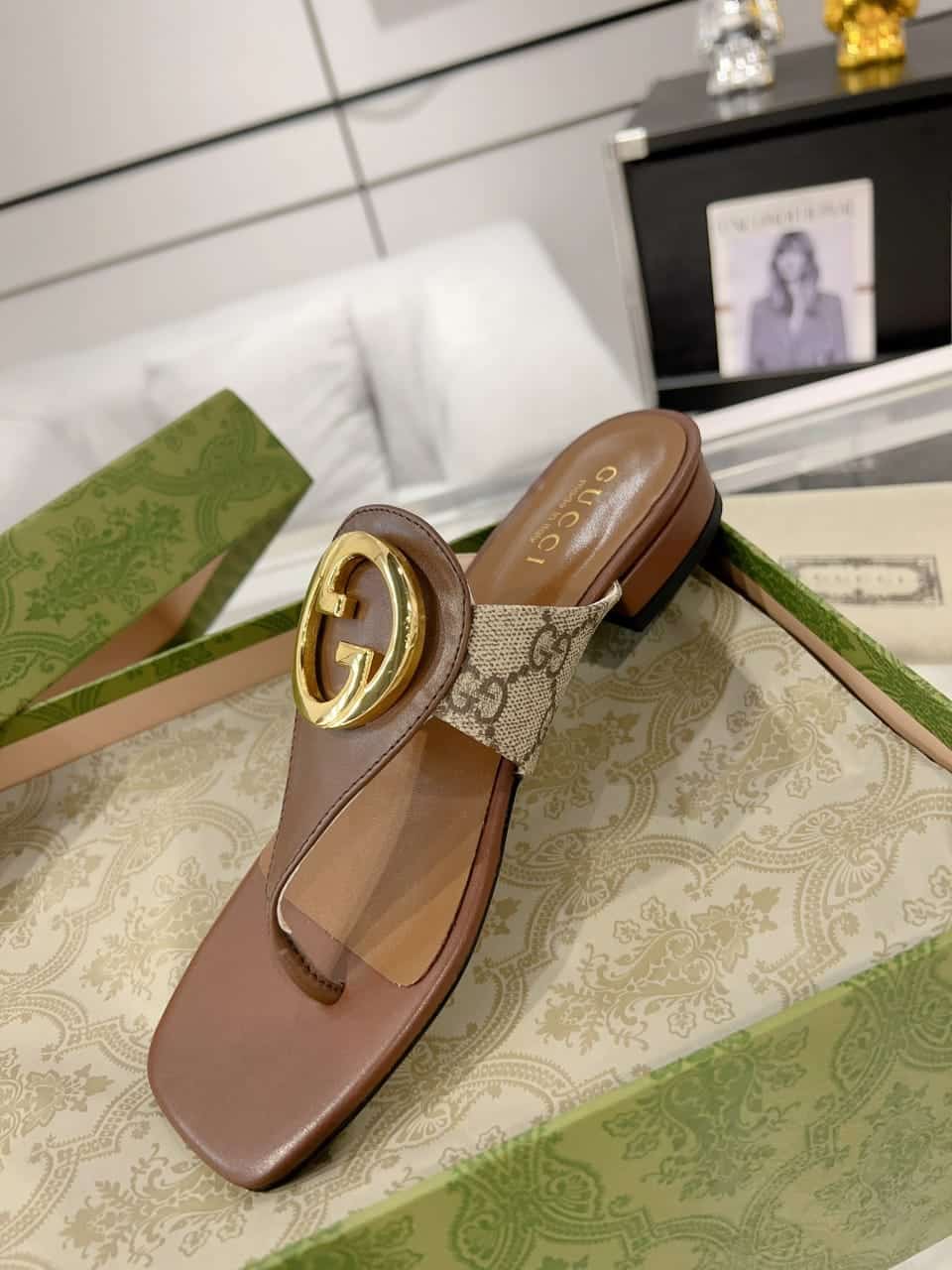Gucci Blondie Thong Sandals Brown P00810550