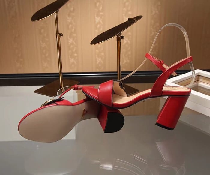 Home Shop Shoes Gucci Shoes Gucci Double G Leather Mid Heel Sandal Red ?453379 A3N00