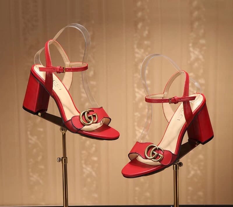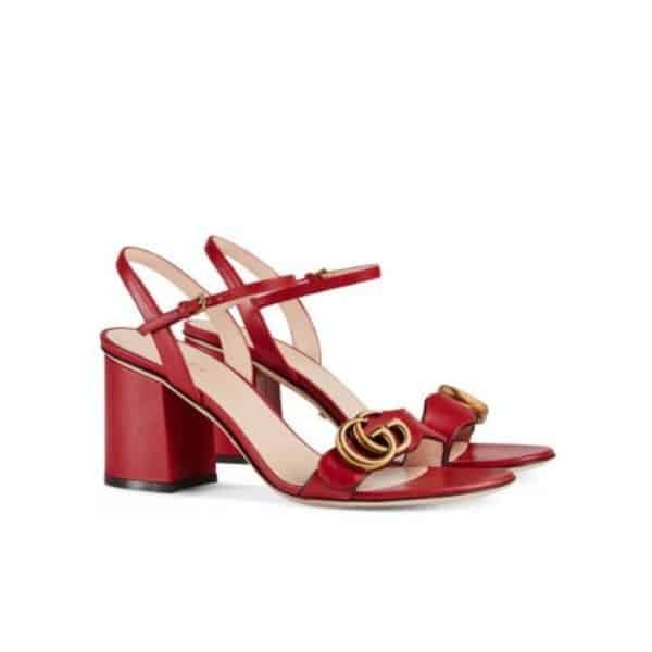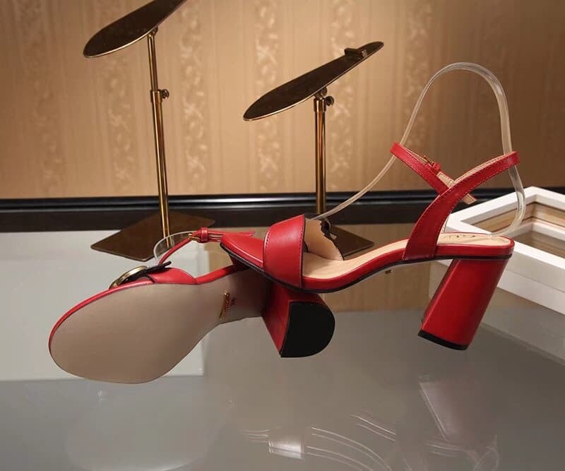 Gucci Double G Leather Mid Heel Sandal Red ?453379 A3N00