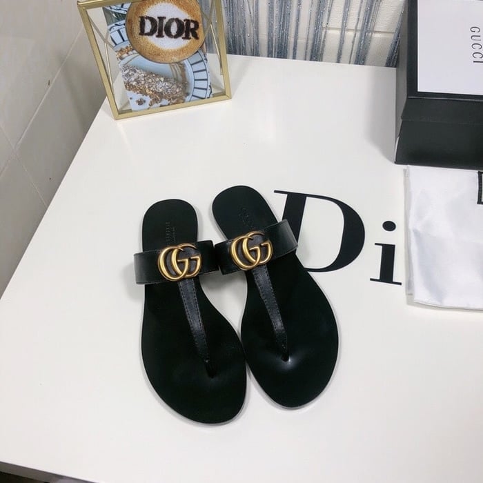 Home Shop Shoes Gucci Shoes Gucci Double G Thong Leather Black ?497444 A3N00 1000