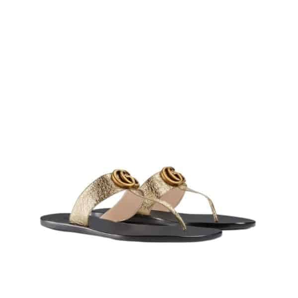 Home Shop Shoes Gucci Shoes Gucci Double G Thong Leather Metallic Gold ?497444 0B7N0 7100