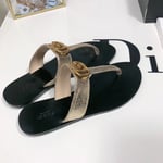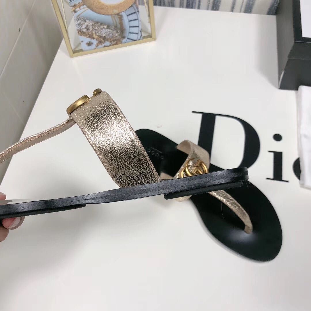 Gucci Double G Thong Leather Metallic Gold ?497444 0B7N0 7100