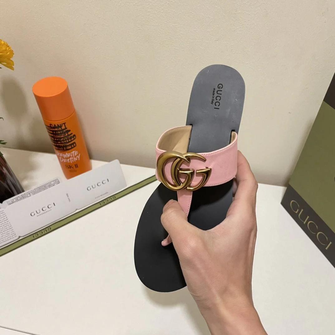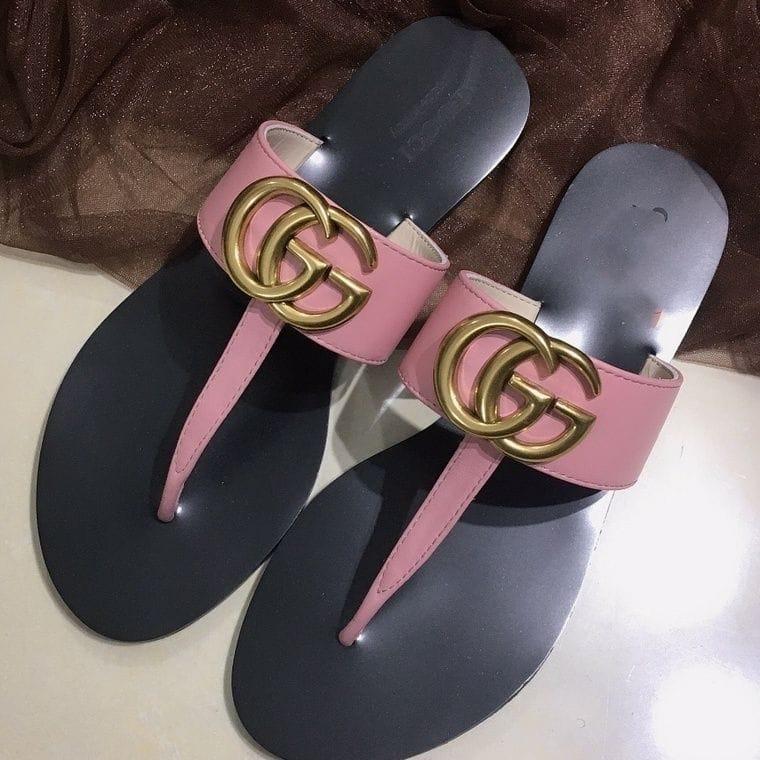 Gucci Double G Thong Leather Pink