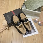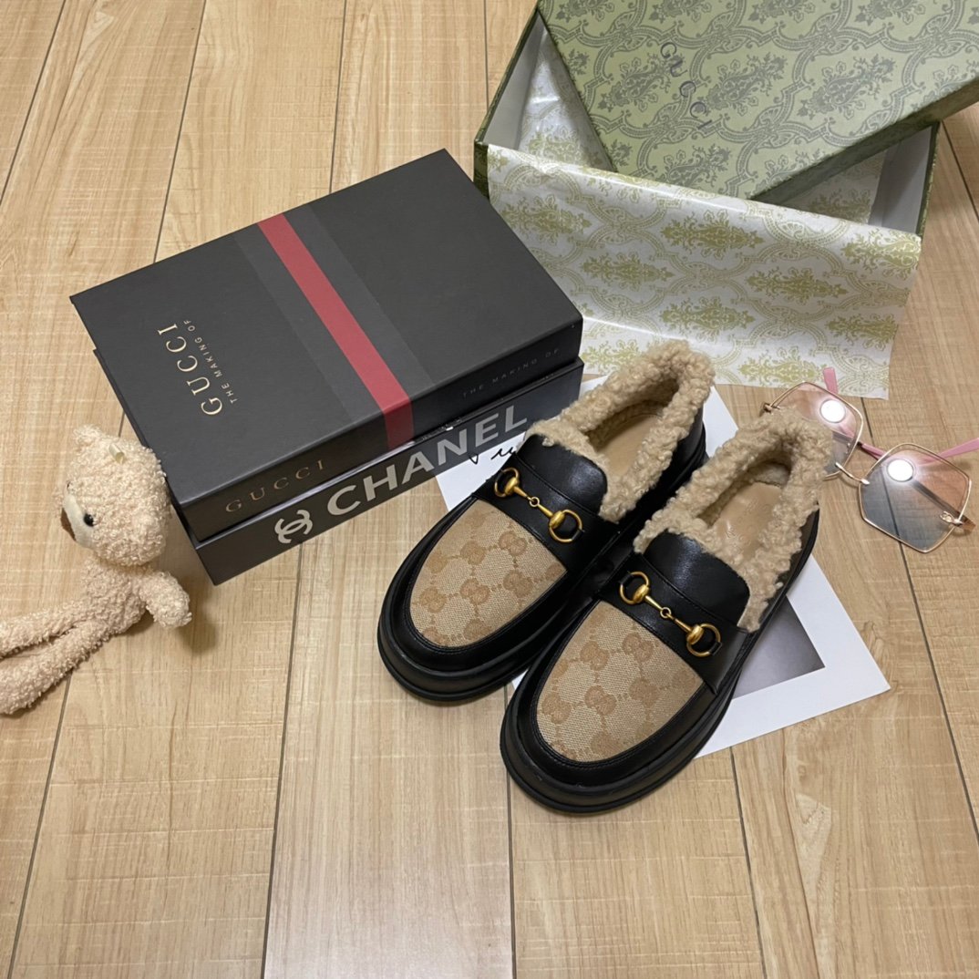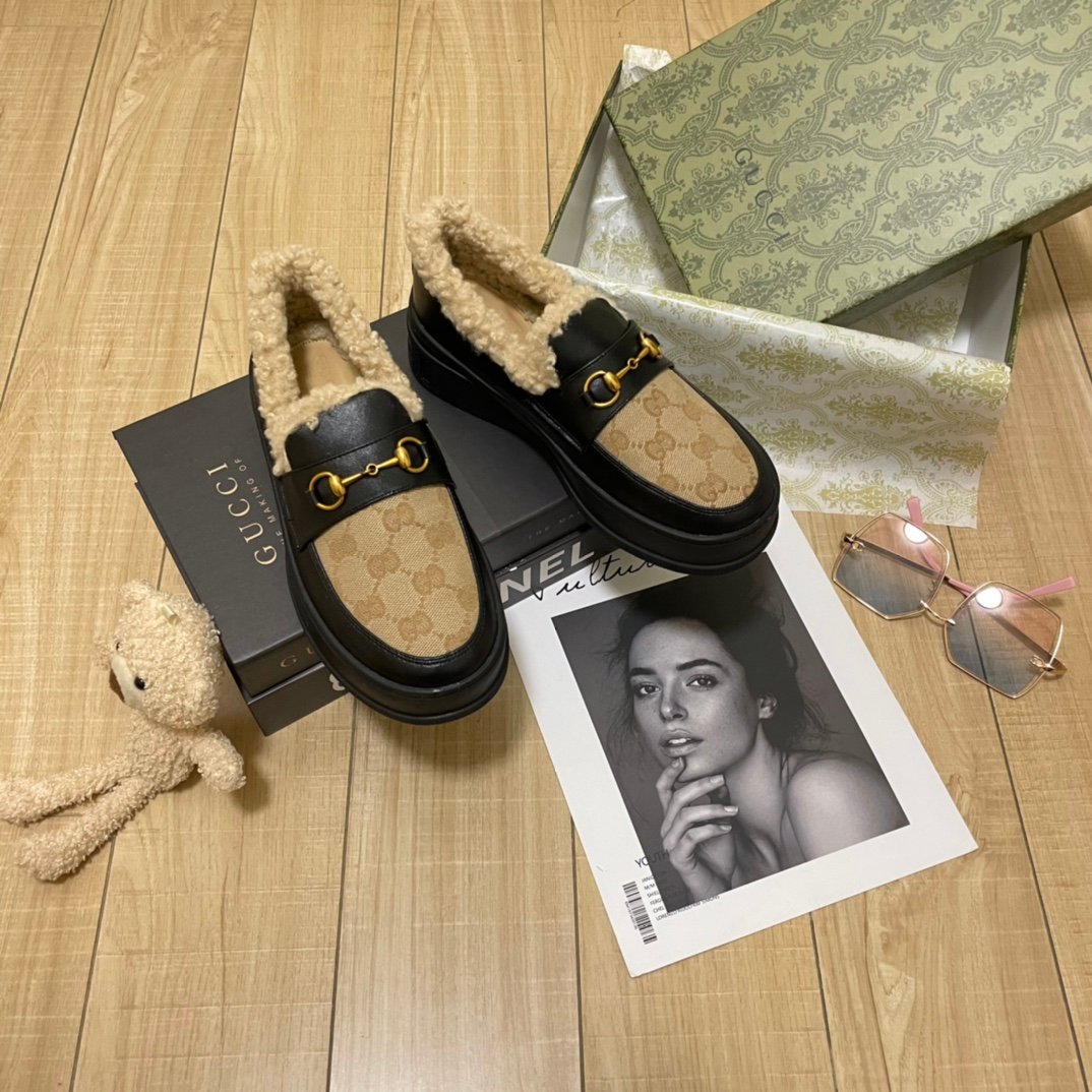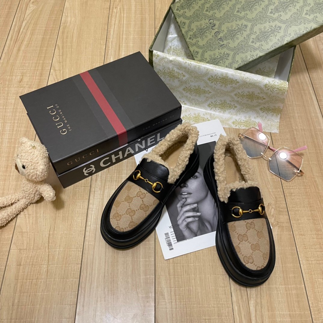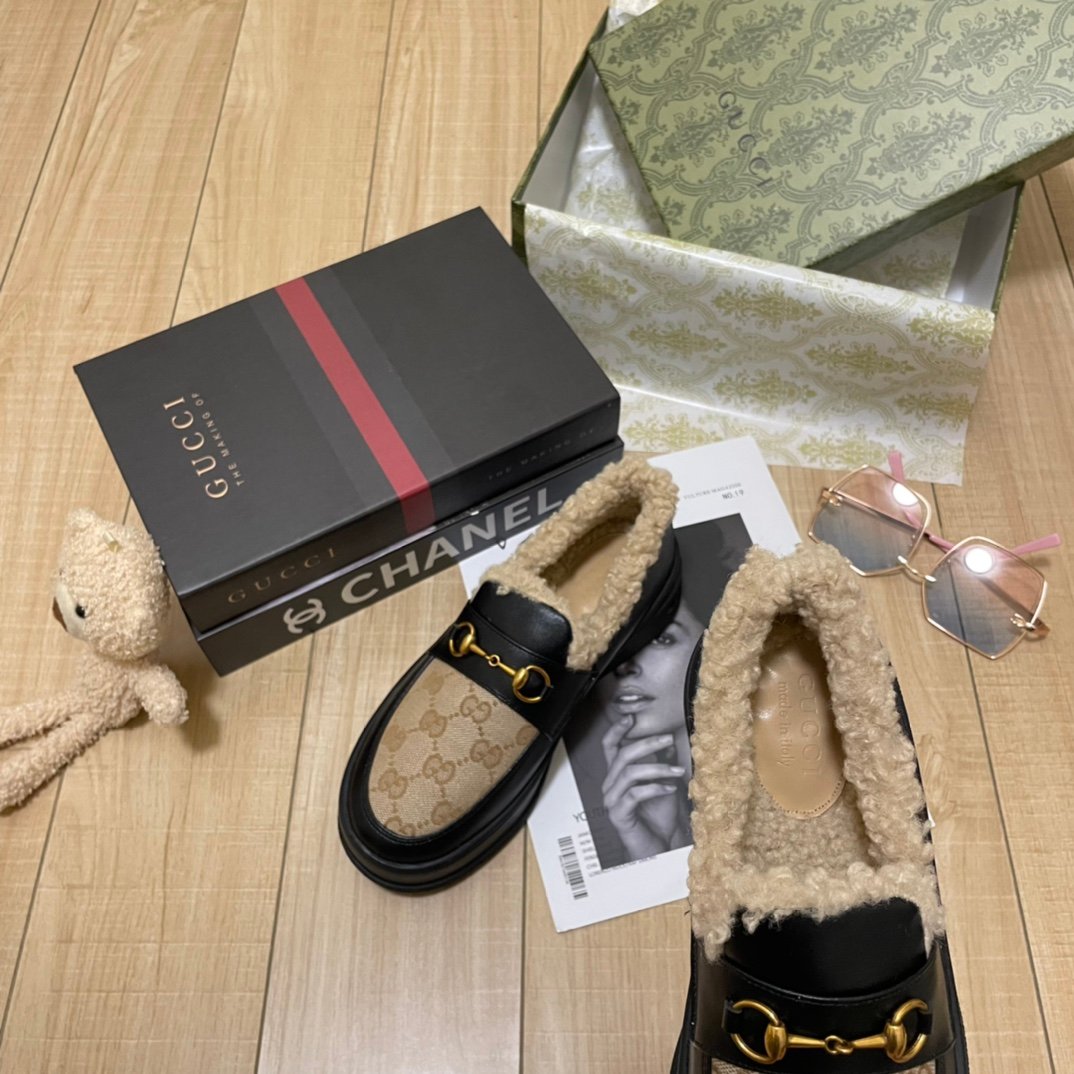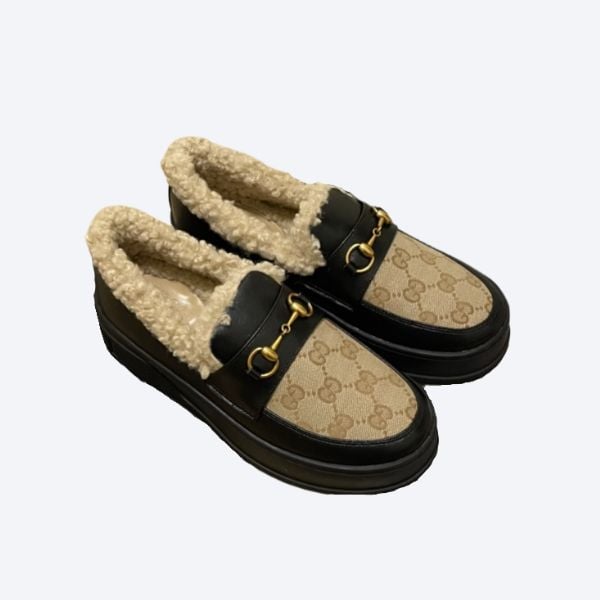 Home Shop Shoes Gucci Shoes Gucci Fleece Collar Loafers Gg Beige And Black Leather