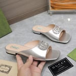 Gucci Gg Crystal Slippers Silver