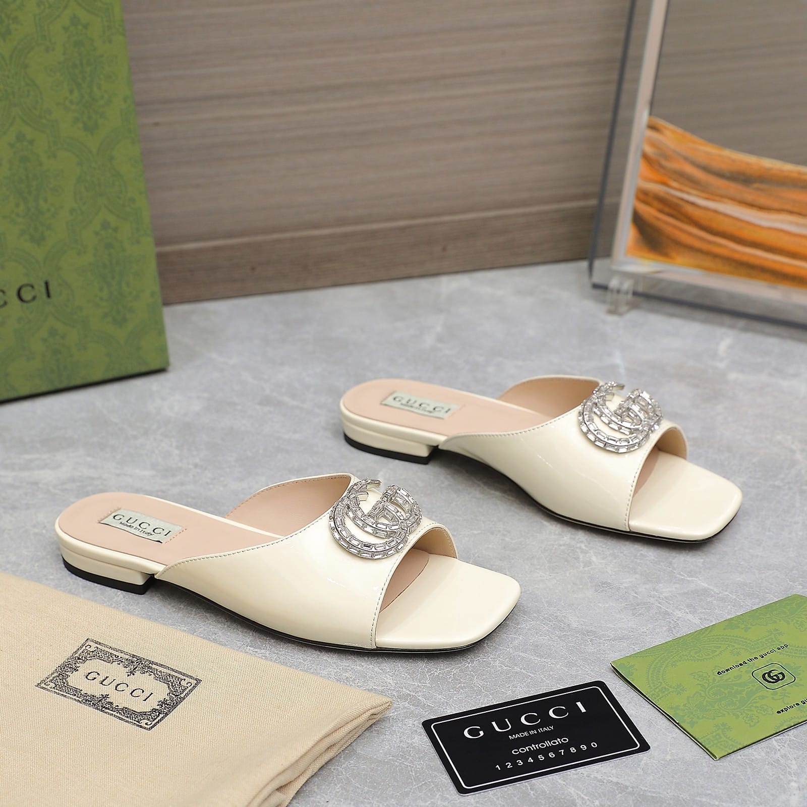 Home Shop Shoes Gucci Shoes Gucci Gg Crystal Slippers White
