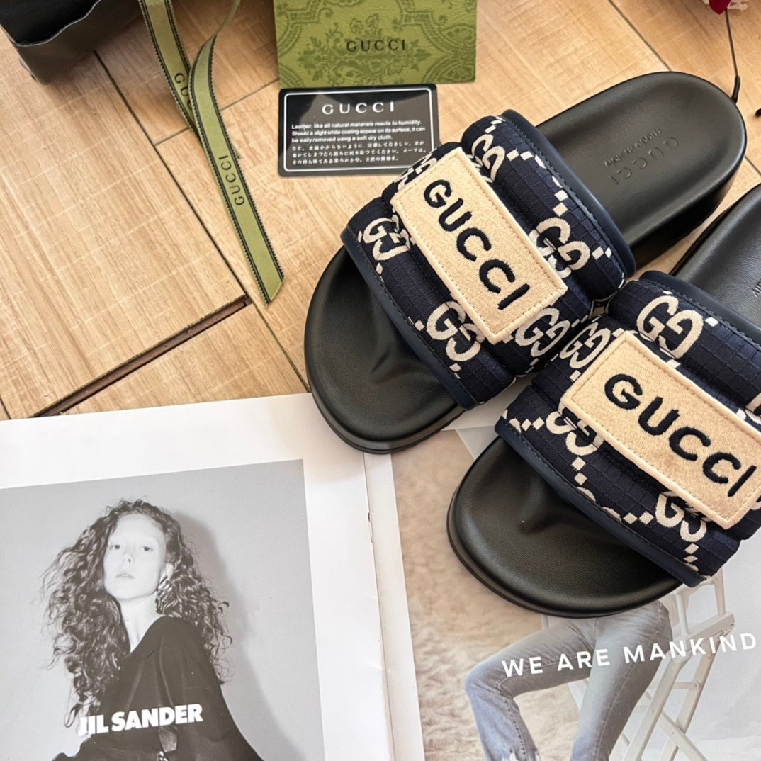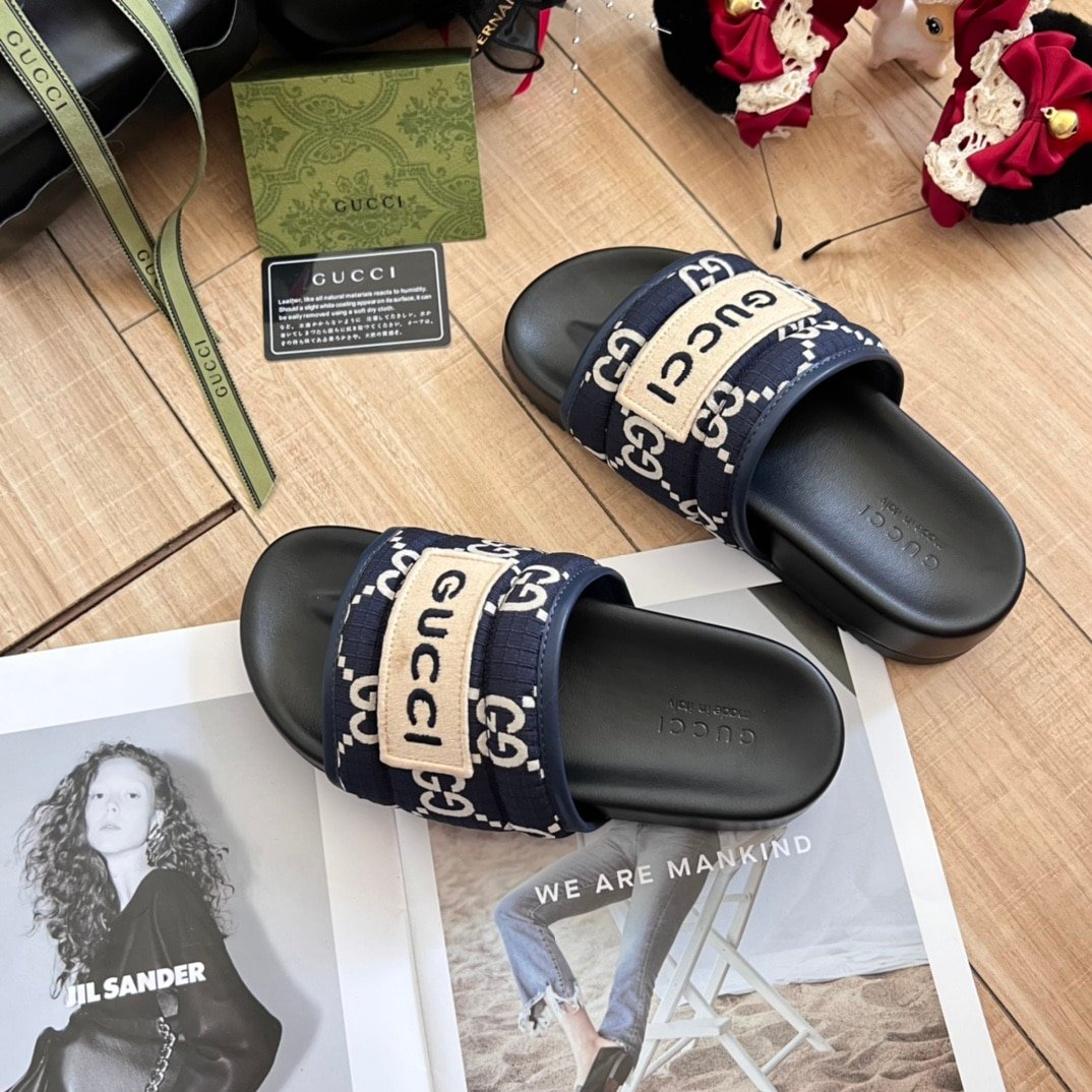Gucci Gg Horizontal Strap Sandals With Tag In Blue