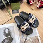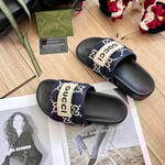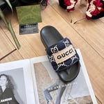 Gucci Rubber Crystal Embellishments Sandals Black