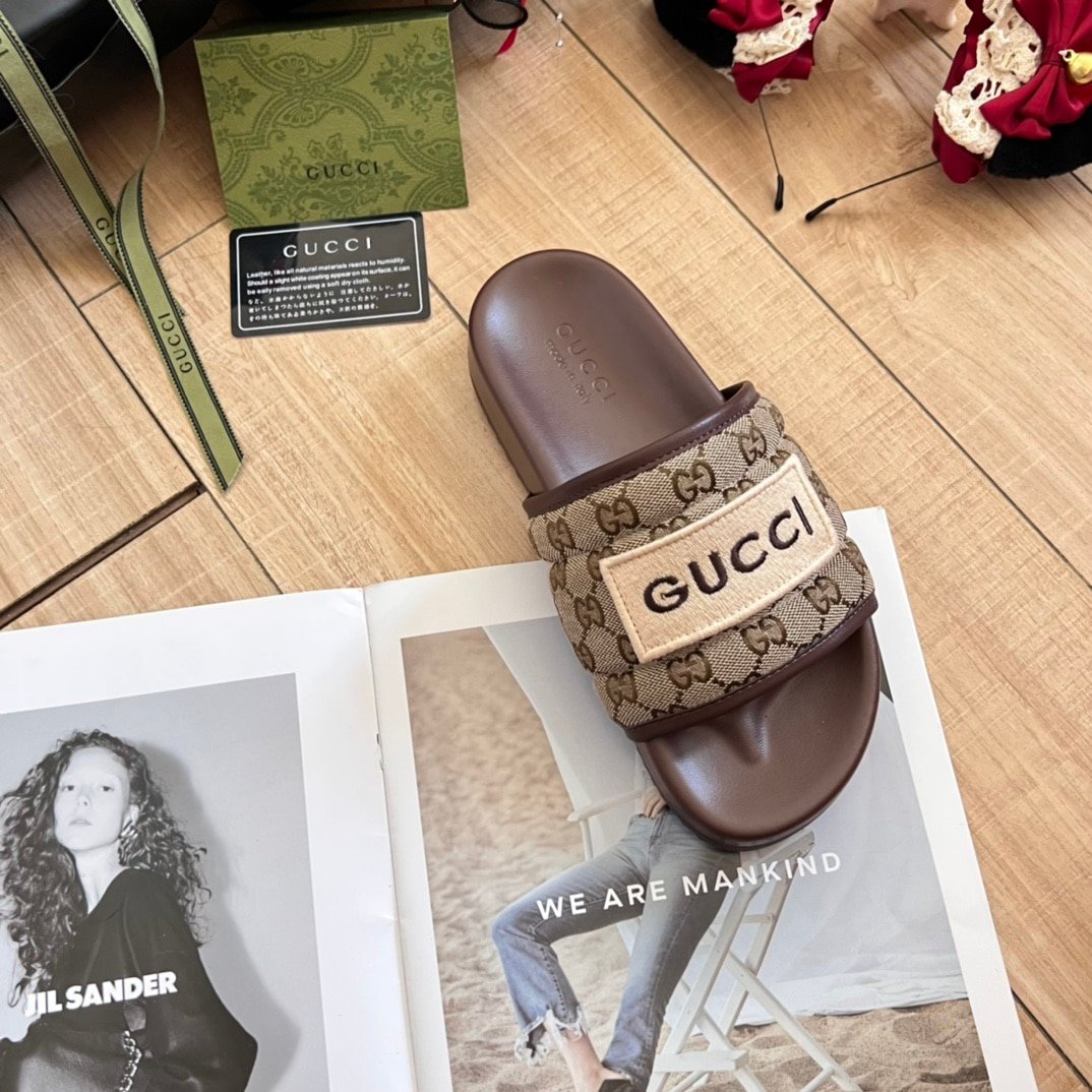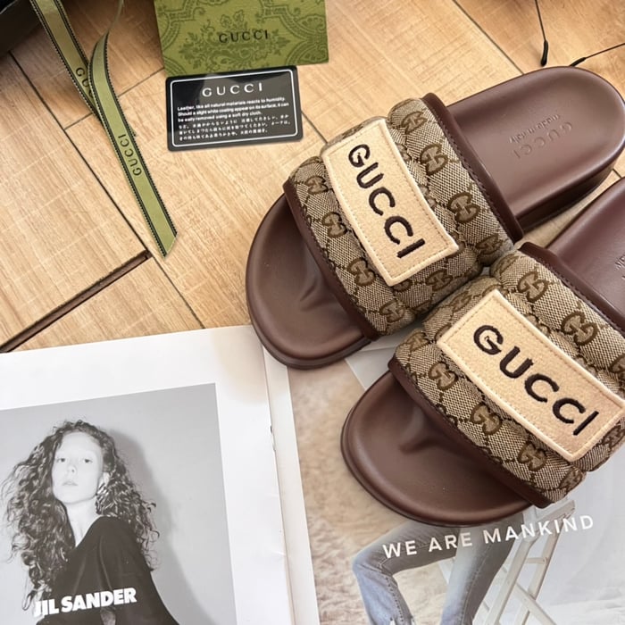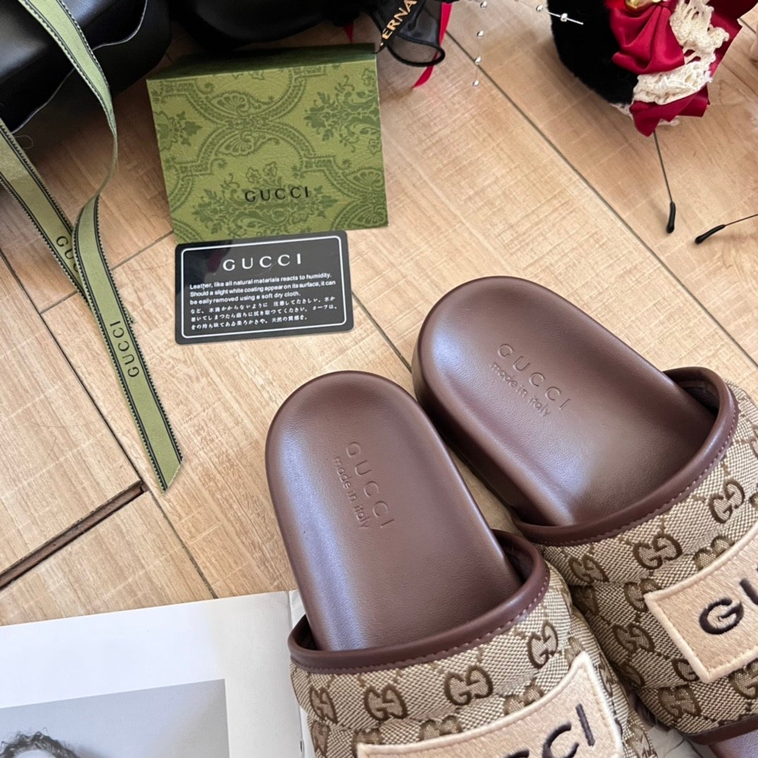 Home Shop Shoes Gucci Shoes Gucci Gg Horizontal Strap Sandals With Tag In Brown