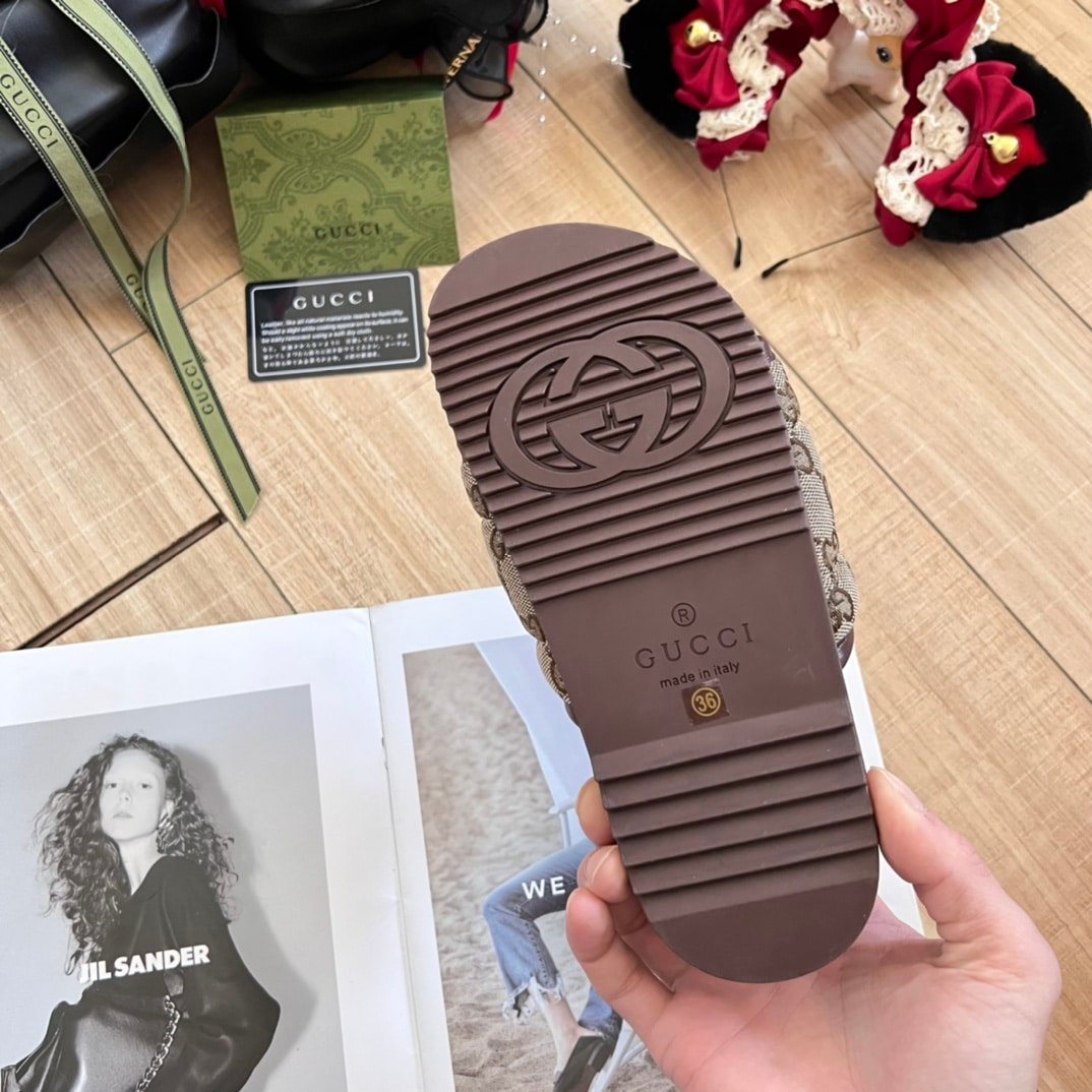 Gucci Gg Horizontal Strap Sandals With Tag In Brown