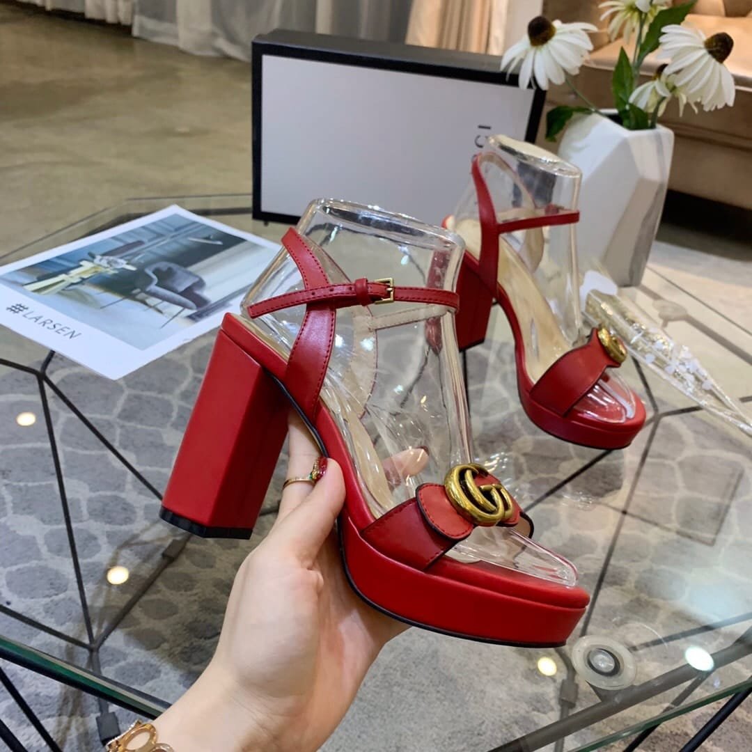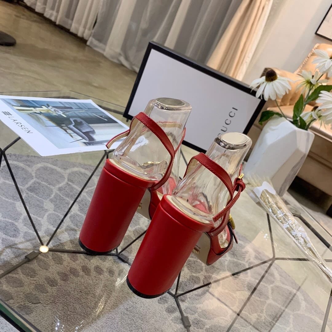Home Shop Shoes Gucci Shoes Gucci Gg Leather Heeled Sandal Red