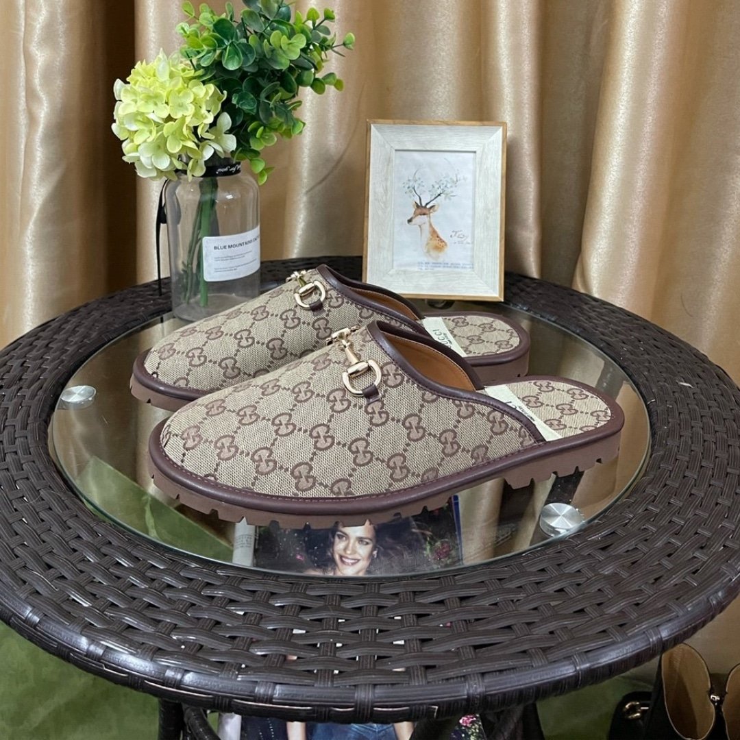 Gucci Gg Slipper Horsebit Canvas Beige 655571 96G60 9762