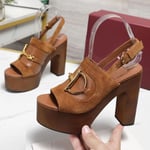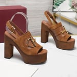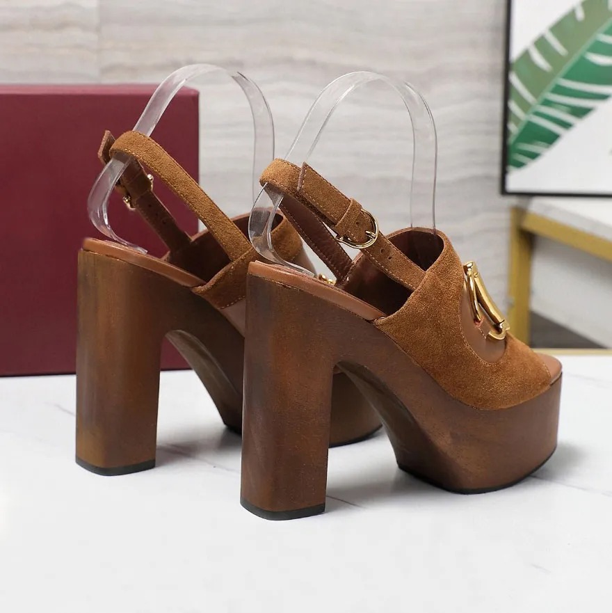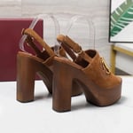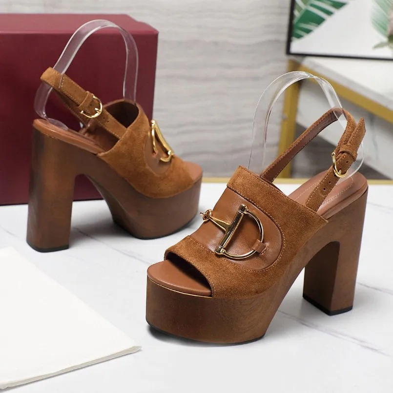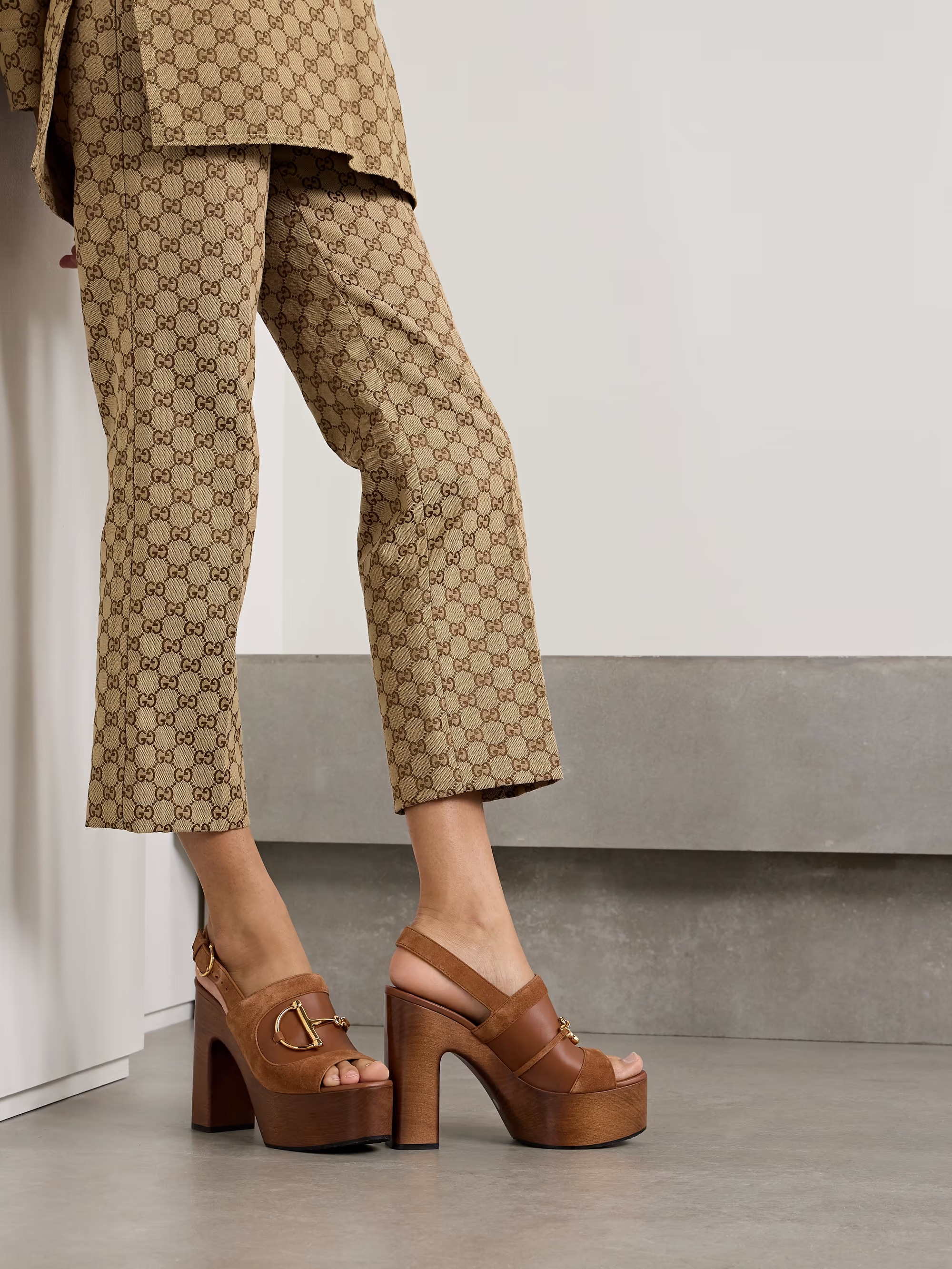 Gucci High Heel Platform Sandal With Horsebit In Brown Suede