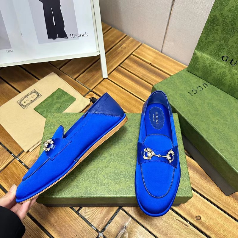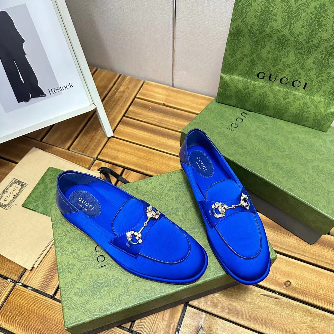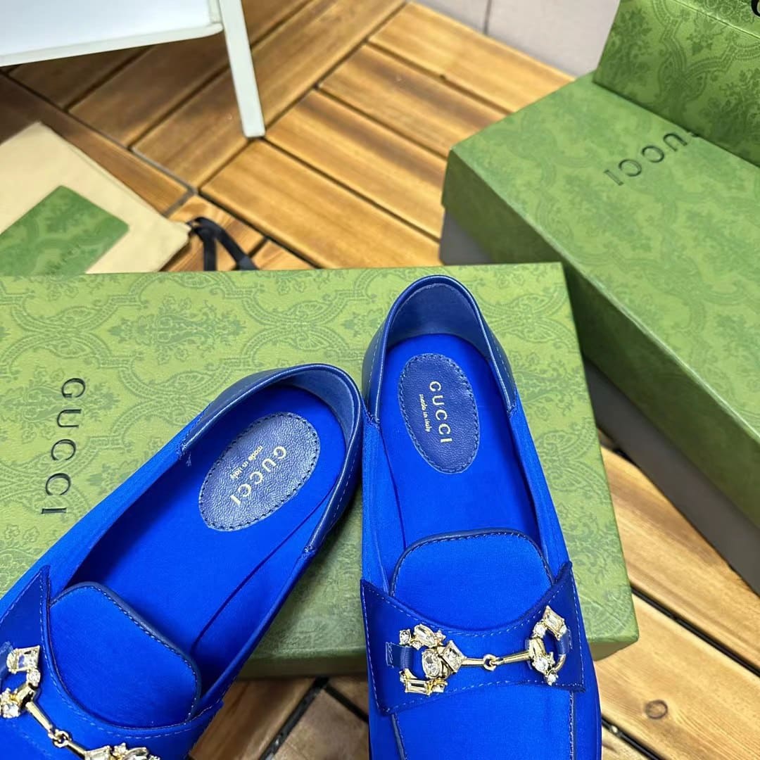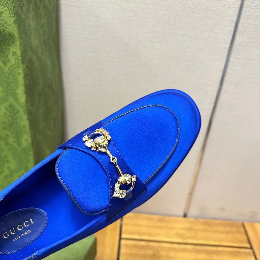 Gucci Horsebit Loafer With Crystals Blue Satin 759780 Knd90 4380